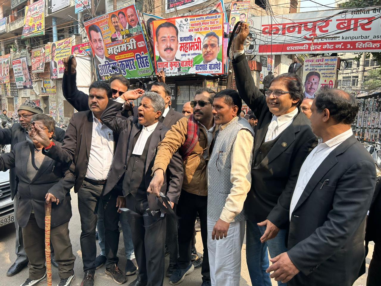 कानपुर, राज्य विधिज्ञ परिषद उत्तर प्रदेश के निर्देशानुसार अधिवक्ता पेंशन योजना अधिवक्ता स्वास्थ्य बीमा कवर आदि मांग को लेकर अधिवक्ताओं ने शताब्दी गेट पर काली पट्टी बांध विरोध प्रदर्शित किया