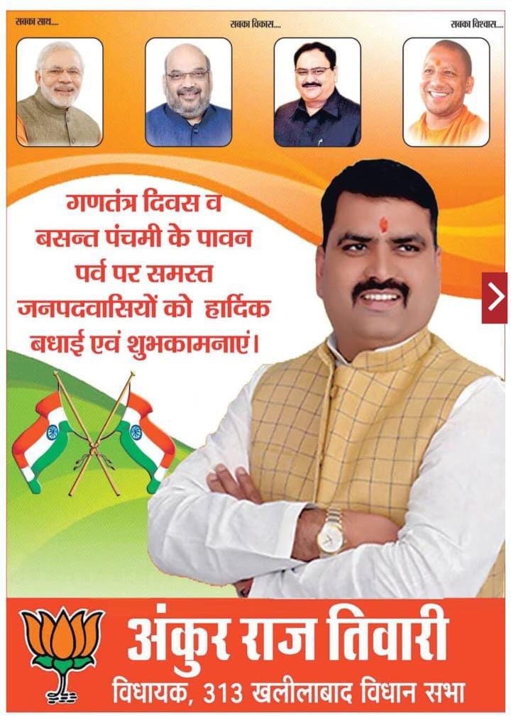 इसके लिए हम सभी लोगो के द्वारा लाखो कुर्बानियां देनी पड़ी, गणतंत्र दिवस के अवसर पर लोकप्रिय विधायक अंकुर राज तिवारी ने खलीलाबाद विधानसभा क्षेत्र के साथ साथ समस्त जनमानस को गणतंत्रता दिवस के साथ ही साथ बसन्त पंचमी के अवसर पर सभी लोगो को ढेरों शुभकामनाएं दी हैं |