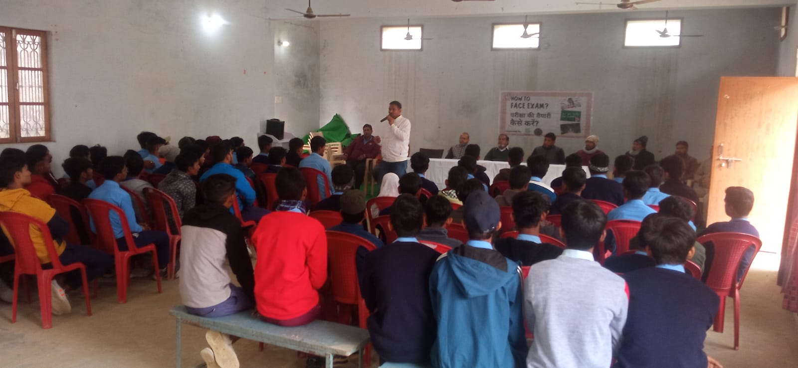 गोरखपुर सोशल फोरम और सेन्टर फाॅर ट्रेनिंग एण्ड एकेडमिक गाइडेंस के द्वारा बोर्ड परीक्षा के पहले छात्र एवं छात्राओं के मार्गदर्शन हेतु ‘‘परीक्षा की तैयारी कैसे करें?’’ के विषय पर विशेष लेक्चर का आयोजन विभिन्न कालेजों में किया जा रहा है जिसके अन्तर्गत आज मौलाना आज़ाद हायर सेकेण्डरी स्कूल, नथमलपुर, गोरखनाथ में लेक्चर का आयोजन किया गया। फोरम के सचिव मोहम्मद राफे ने इन लेक्चर्स से हमारा उद्देश्य विद्यार्थियों में आत्मविश्वास पैदा करना है। वो विद्यार्थी जिसके अन्दर आत्मविश्वास होता है वो किस भी परीक्षा का सामना आसानी से कर सकता है। फोरम के अध्यक्ष औसाफ अहमद ने छात्रों को सम्बोधित करते हुए कहा कि मनोवैज्ञनिक बताते हैं कि परीक्षा से पहले छात्रों के मष्तिश्क को डर, तनाव, चिन्ता और दबाव जैसी चीज़ें घेर लेते हैं, यहीं वो नकरात्मक तत्व हैं जो परीक्षा में छात्रों को नुकसान पहंुचाते हैं, कारणवश हाथ कांपना, पसीने आना और आसान प्रश्न भी गलत हो जाता है। उन्होंने बताया कि परीक्षा के समय किन-किन बिंदुओं पर विशेष ध्यान दिया जाए ताकि परीक्षा में अच्छे नंबरों से कामयाबी प्राप्त की जा सके। इस अवसर पर स्कूल के प्रिन्सिपल डा गुलाम हैदर ने भी छात्रों का उत्साह बढ़ाया और कहा कि मेहनत का कोई बदल नहीं होता। जो बच्चे मेहनत से पढ़ाई करते हैं उन्हें कामयाब होने से कोई नहीं रोक सकता। इस सम्बन्ध में उन्होंने कहा कि पूरे लगन के साथ पढ़ना, समय पर खाना और आवश्यकतानुसार सोना एक अच्छे विद्यार्थी की पहचान होती है।