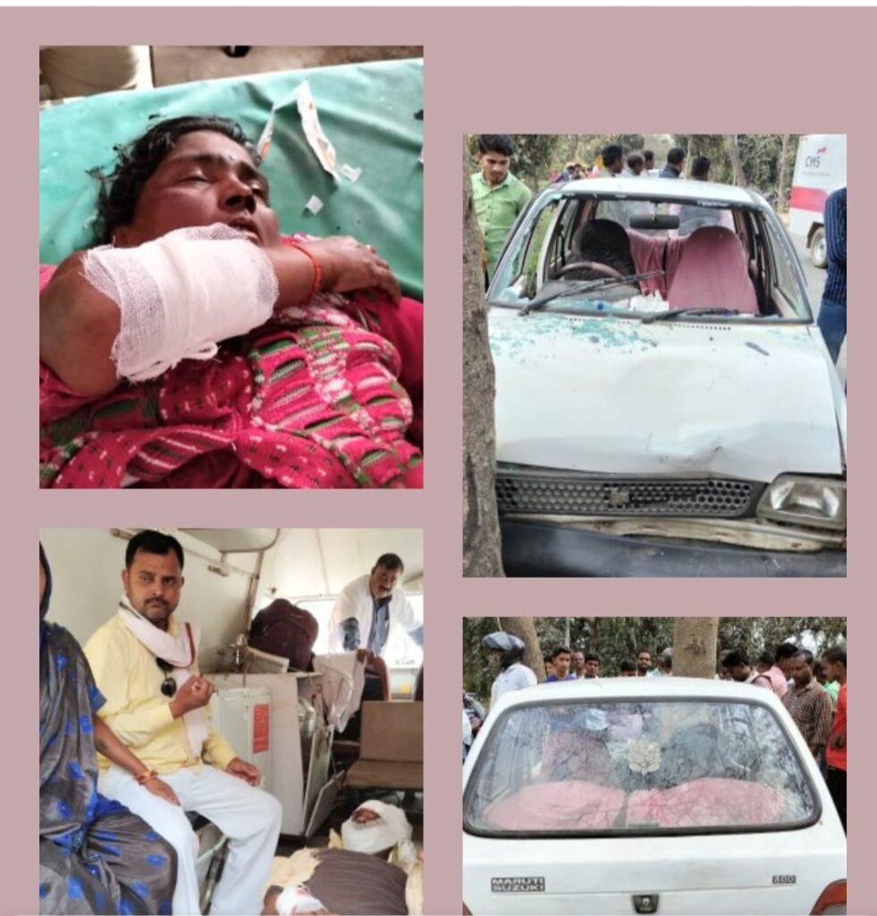 लालगंज थाना क्षेत्र के ठोकवा निवासी कपिल उम्र 45 वर्ष पुत्र झिनकान और उनकी पत्नी जेना उम्र 42 वर्ष मुण्डेरवा थाने के बरहुआ गांव से अपनी पुत्री के घर से अपने गांव ठोकवा जा रहे थे जैसे पंखोबारी पहुंचे ही थे कि सामने से आ रही मारुति कार ने जोर की टक्कर मारी जिससे दोनों पति पत्नी दूर जा गिरे और मारुति सीधा पेड़ से टकराई। पीछे से आ रहे रखौना चौकी प्रभारी चन्दकान्त पाण्डेय ने दोनों घायलों को अपनी कार में बैठा रहे थे, तभी 108 एंबुलेंस पहुंची और घायलों को पीएचसी बनकटी लाई। पति के सर के आगे पीछे,ललाट, और हाथ पैर में अधिक चोटें लगी वहीं पत्नी को भी काफी चोटें आई है। डॉक्टर ने प्रथम उपचार करके सदर अस्पताल रेफर किया। वहीं मारूति सवार मुण्डेरवा थाना के जोगिया व लालगंज थाना के बखरिया निवासी अखिलेश मिश्रा पुत्र एडवोकेट राजमंगल मिश्रा को मामूली चोट आई। प्रथम उपचार करके घर भेज दिया। लालगंज पुलिस ने बाइक और मारुति सुजुकी को टोचन कर थाने लाई।