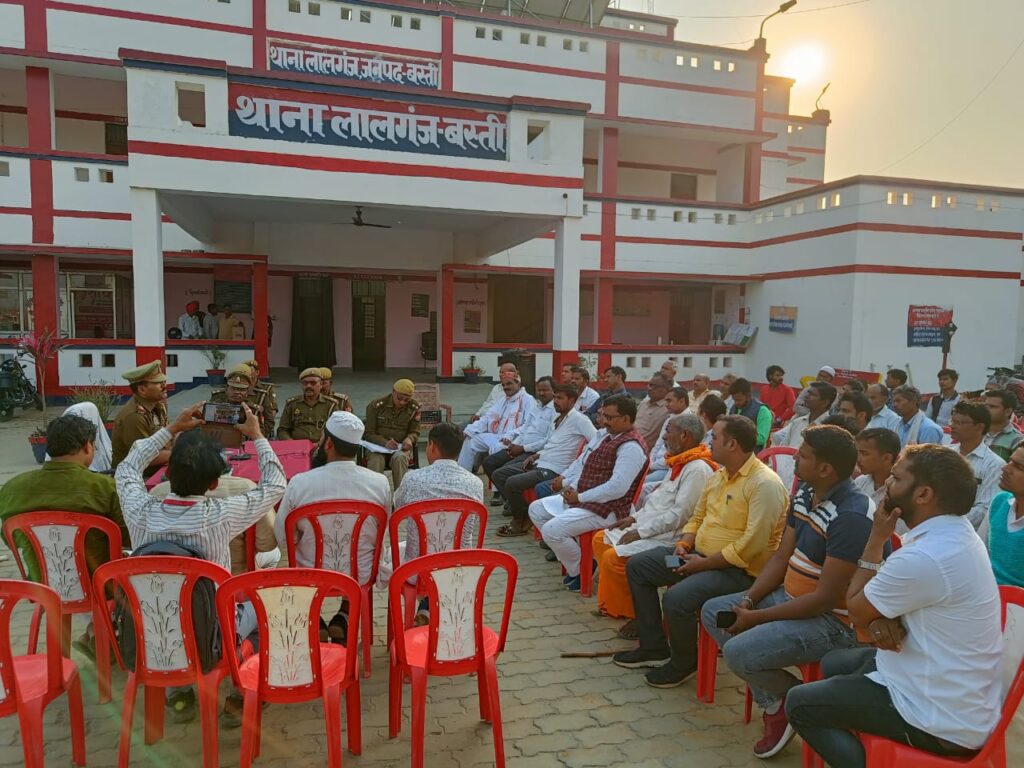 बस्ती, बनकटी……रविवार को लालगंज थानाध्यक्ष महेश सिंह के नेतृत्व मे आगामी होली,शबे-ए-बरात त्यौहार को लेकर थाना क्षेत्र के संभ्रांत नागरिकों,ग्राम प्रधानों धार्मिक साधु-संतों, मौलाना, मौलवी,एवं डी०जे० धारकों की बैठक की गई । बैठक के दौरान उच्च अधिकारीओ से प्राप्त दिशा-निर्देशों से सभी को अवगत कराया गया कि दोनों त्योहारों को शांति एवं सौहार्द पूर्ण वातावरण में संपन्न कराने व आपस मे भाई-चारा बनाये रखने का अनुरोध किया गया।और सभी को अवगत कराया गया कि शांति एवं कानून व्यवस्था को किसी ने भी तोडने का प्रयास किया। तो उसके विरुद्ध सक्त से सक्त कार्यवाही की जाएगी।गोष्ठी में उपस्थित सभी महानुभावो, पत्रकार बंधुओ द्वारा अवगत कराया गया कि दोनों त्योहारों को लेकर किसी भी प्रकार की कोई समस्याआ आती है।तो थाने के सीयूजी नम्बर 94544 03116 पर सम्पर्क करें। उसके बाद थानाध्यक्ष ने