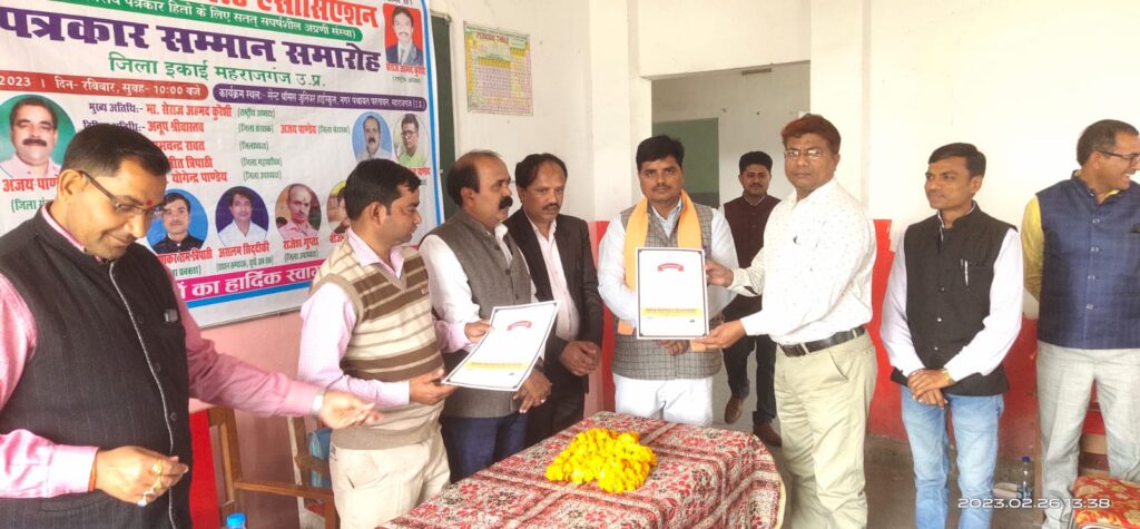 पत्रकार सम्मान समारोह में पत्रकारों प्रशस्ति पत्र देकर सम्मानित किया गया।