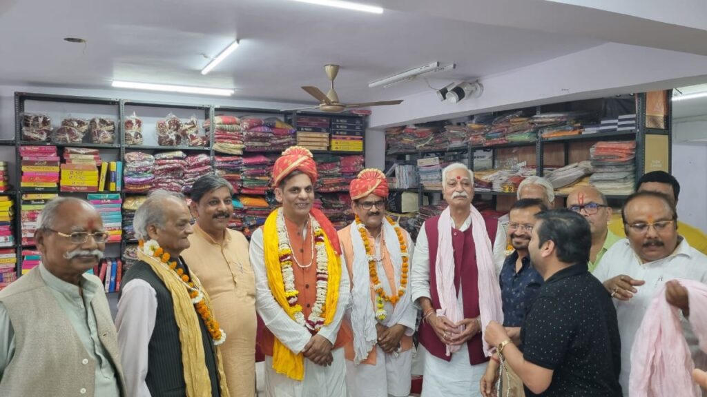 कानपुर, व्यापार मंडल के स्वर्ण जयंती वर्ष के अवसर पर 8 फरवरी से 28 फरवरी तक व्यापार मंडल व्यापारियों के प्रतिष्ठान कार्यक्रम संपन्न हुआ कार्यक्रम अच्छा हो ने के कारण उत्तर प्रदेश व्यापार मंडल द्वारा 1 सप्ताह का समय बढ़ाया गया उसी क्रम में आज समापन कार्यक्रम व्यापार मंडल व्यापारियों के द्वार कानपुर की सबसे बड़ी मार्केट कपड़ा मार्केट में अमित दोसर के प्रतिष्ठान पर सभी व्यापारी एकत्रित होकर कार्यक्रम को सफल बनाने के लिए उपस्थित व्यापारियों व प्रदेश अध्यक्ष का स्वागत करते हुए कार्यक्रम का शुभारंभ किया गया प्रदेश अध्यक्ष ने अपने संबोधन में कहा कि जनरल गंज का कपड़ा मार्केट व्यापार मंडल की प्रगति में अग्रिम भूमिका निभाता रहा है और आगे भी निभाता रहेगा,माननीय प्रदेश अध्यक्ष ने अपने 51 दिन की यात्रा का भी विस्तार से व्यापारियों के बीच चर्चा की और व्यापारियों से अनुरोध किया कि एकमत होकर व्यापारी एकता को बल प्रदान करें