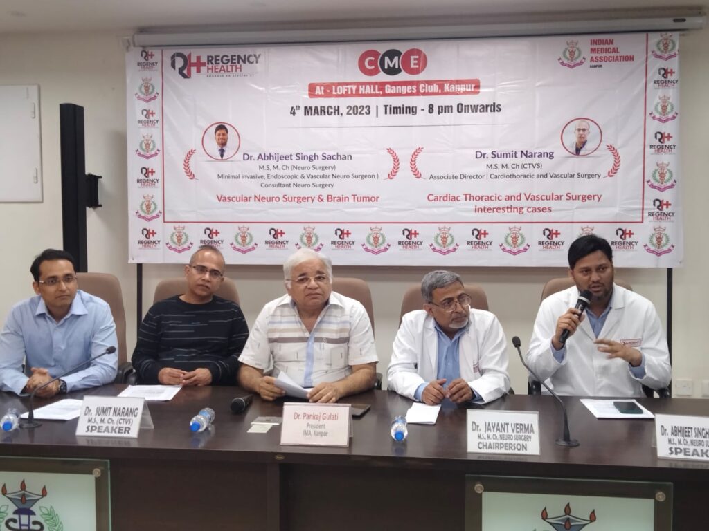 कानपुर, इंडियन मेडिकल एसोसिएशन कानपुर शाखा द्वारा शनिवार को एक पत्रकार वार्ता का आयोजन आईएमए के कॉन्फ्रेंस हॉल परेड कानपुर में किया गया। यह पत्रकार वार्ता आज आई०एम०ए० कानपुर शाखा द्वारा आयोजित एक सी०एम०ई० प्रोग्राम के सम्बन्ध में थी। आई०एम०ए० कानपुर के अध्यक्ष डा० पंकज गुलाटी ने कार्यक्रम की अध्यक्षता की तथा आये हुए सभी अतिथियों का स्वागत करते हुए इन बीमारियों की गम्भीरता के विषय में बताया तथा कार्यक्रम का संचालन डा० रोहन कुमार, संयुक्त वैज्ञानिक सचिव, आई०एम०ए० कानपुर ने किया। आज के वक्ताओं का परिचय डॉ गौरव दुबे, उपाध्यक्ष एवम इंचार्ज वैज्ञानिक सब कमिटी ने दिया तथा आज के विषय पर डॉ अर्चना भदौरिया, चेयरमैन साइंटिफिक कमेटी आईएमए कानपुर ने प्रकाश डाला ।आज के कार्यक्रम के चेयरपर्सन डॉ राकेश वर्मा, प्रो. एवं विभागाध्यक्ष कार्डियोवैस्कुलर सर्जरी, एलपीएस इंस्टीट्यूट ऑफ कार्डियोलॉजी कानपुर एवं डॉ जयंत वर्मा, सीनियर कंसल्टेंट न्यूरो सर्जन, रीजेंसी हॉस्पिटल कानपुर थे।