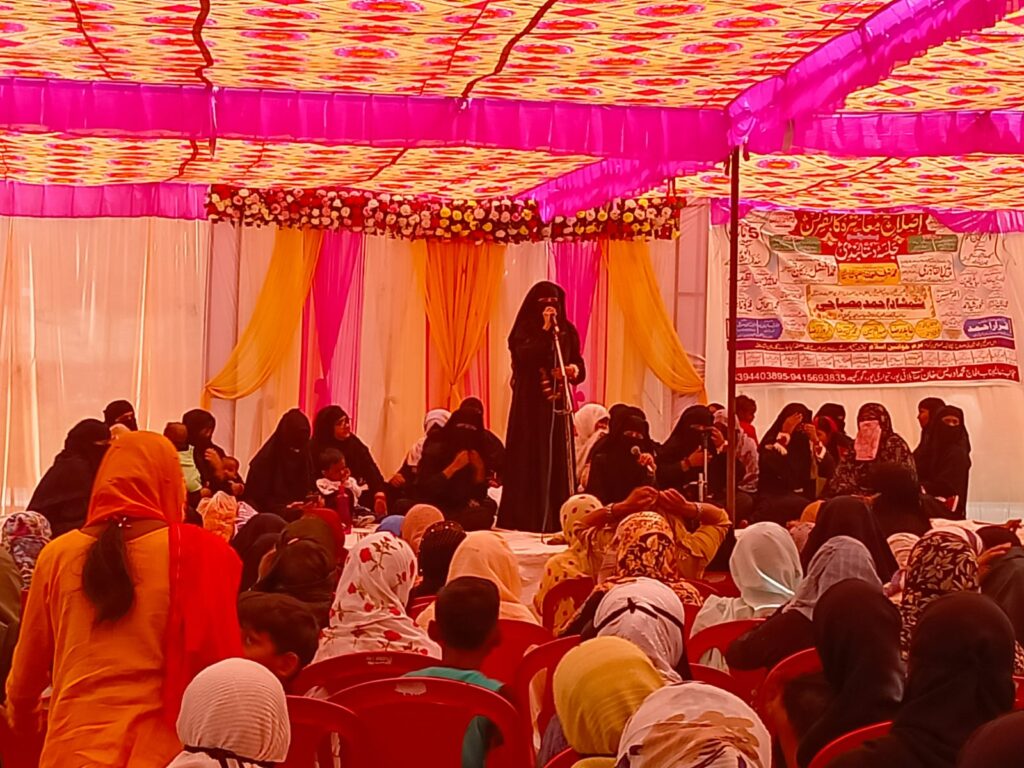 महिलाओं का जलसा ‘बज्मे ख़्वातीने इस्लाम’ नाम से हुआ। क़ुरआन-ए-पाक की तिलावत हुई। नात व मनकबत पेश की गई। मुख्य वक्ता जन्नतुन निसा, निकहत फातिमा व शबनम खातून ने कहा कि इबादत में लज़्ज़त तभी मिलेगा जब हमारे पास दीनी तालीम होगी। दीनी तालीम हमारी हर जगह रहनुमाई करती है और मुस्लिम समाज में सबसे बड़ी कमी दीनी व दुनियावी तालीम की है। दीनी व दुनियावी तालीम में हम बहुत पीछे हैं। लिहाजा दीनी व दुनियावी तालीम के प्रति मुसलमानों को जागरूक किया जाए। तालीम हासिल करने की कोई उम्र नहीं होती। लिहाजा सभी को झिझक छोड़ कर तालीम हासिल कर अल्लाह का नेक बंदा बनना चाहिए। लोगों को दीनी तालीम के साथ-साथ खाने, पीने, उठने, बैठने, सोने, बेहतर अख़लाक, साफ-सफाई, हलाल रिज़्क कमाने, अच्छा शहरी बनने व गुनाहों से बचने की भी तालीम भी हासिल करनी चाहिए। जलसे में ताबिंदा खानम व शुएबा अनीस की दस्तारबंदी हुई। अंत में सलातो सलाम पढ़कर मुल्क में अमनो अमान की दुआ मांगी गई। जलसे में इशरत जहां, हदीसुन निसा, कैसर जहां, अजीबुन निसा, सरवरी खातून, अफसरी खातून, अख्तरी खातून, मोहसिना फातिमा, गजाला फातिमा, फातिमा इजहार, शहाना खातून, कहकशां फातिमा सहित बड़ी संख्या में महिलाएं मौजूद रहीं।