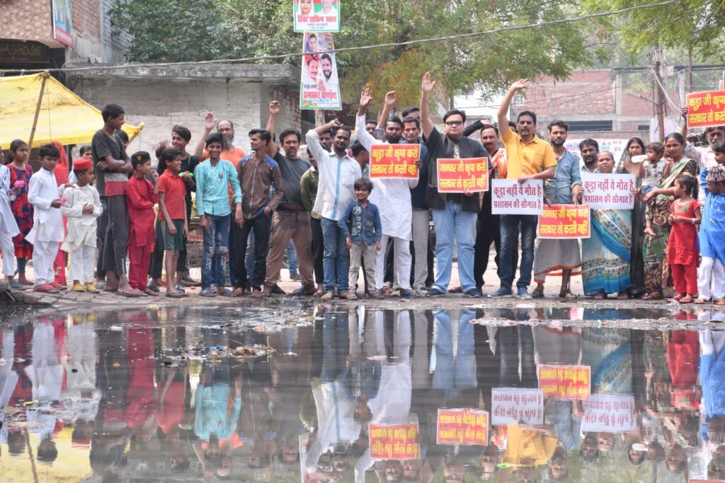 अभिमन्यु गुप्ता ने कहा की इतनी भयावह स्तिथि में भी आम लोग जीवन डेंगू के कहर के वक्त कूड़े व गंदगी में जीवन यापन को मजबूर हैं और नगर निगम इस भयावह स्थिति को जानने के बावजूद कुछ नहीं कर रहा।काले खान ने बताया की नगर आयुक्त से लेकर क्षेत्रीय अधिकारी व पार्षद को सब जानकारी है पर कोई कार्यवाही नहीं हो रही!आक्रोशित लोगों ने कहा की इस तरह बीमार करके मारने से तो अच्छा है की नगर निगम सीधे जहर पिला दे।लोग घुट घुट कर नरक में जीने को मजबूर हैं।मांग की गई की तत्काल सफाई की व्यवस्था की जाए अन्यथा बड़ा आंदोलन किया जाएगा।अभिमन्यु गुप्ता, काले खान,सुनील यादव,तौसीफ सिद्दीकी,महमूद खान,प्रदीप तिवारी, मो साकिफ कुरैशी आदि मौजूद रहे।