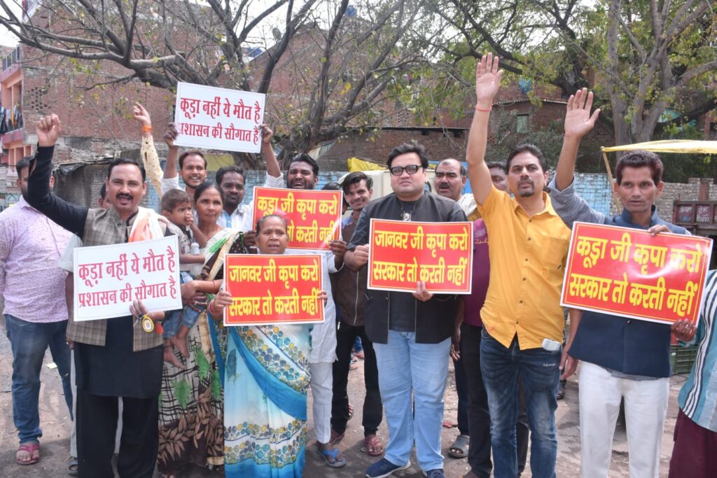 कानपुर।कानपुर दक्षिण के जूही परमपुरवा में जालपा देवी मंदिर के बाहर कई महीनों से गन्दगी,कूड़े,सीवर,आवारा जानवर के कारण भयावह स्तिथि बनी हुई है जिससे आक्रोशित क्षेत्रीय लोगों ने न्याय संघर्ष समिति के संयोजक और प्रांतीय व्यापार मंडल के प्रदेश अध्यक्ष अभिमन्यु गुप्ता और कानपुर दक्षिण व्यापार मंडल के वरिष्ठ उपाध्यक्ष काले खान के नेतृत्व में सत्याग्रह करते हुए कूड़े गन्दगी से निजात की मांग की।अभिमन्यु गुप्ता ने कहा की यह है स्वच्छ भारत स्वस्थ भारत और कानपुर स्मार्ट सिटी के दावे की हकीकत।अभिमन्यु ने कहा कि आम जन कूड़े व भयावह गंदगी के बीच जीवन यापन को मजबूर हैं। अभिमन्यु ने कहा की नवरात्रि और रमजान आने वाले हैं।लोग महीनों से निकाय में शिकायत कर रहे हैं पर सुनने वाला कोई नहीं।