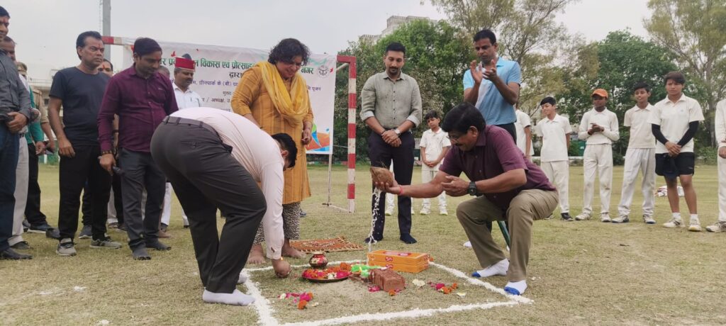 ग्रीन पार्क स्टेडियम के मेन ग्राउंड में मैच के दौरान भी क्रिकेट की ट्रेनिंग प्राप्त करने वाले बच्चों का बाधित नही होगी प्रैक्टिस, ग्रीन पार्क स्टेडियम में मैच के दौरान भी बी ग्राउंड में बच्चे प्रैक्टिस कर सकते है। उत्तर प्रदेश खेल विकास एवं प्रोत्साहन समिति के माध्यम से बनाई जाएगी पिच।”बी” ग्राउण्ड में समुचित तरीके से लगाई जाएंगी लाइटे ताकि रात्रि में भी हो सकेंगे मैच।गर्मी की छुट्टियों में क्रिकेट की ट्रेनिंग लेने वाले बच्चों के लिए 2 शिफ्ट में आयोजित होगा क्रिकेट समर कैम्प।उक्त बातें आज जिलाधिकारी विशाख जी0 ने ग्रीन पार्क स्टेडियम के “बी” ग्राउंड में क्रिकेट पिच निर्माण कार्य के भूमि पूजन के दौरान कही । इस अवसर पर अपर जिलाधिकारी नगर अतुल कुमार, उपनिदेशक खेल मुद्रिका, पाठक क्यूरेटर शिवकुमार तथा क्रिकेट की ट्रेनिंग प्राप्त करने वाले बच्चे उपस्थित रहे।