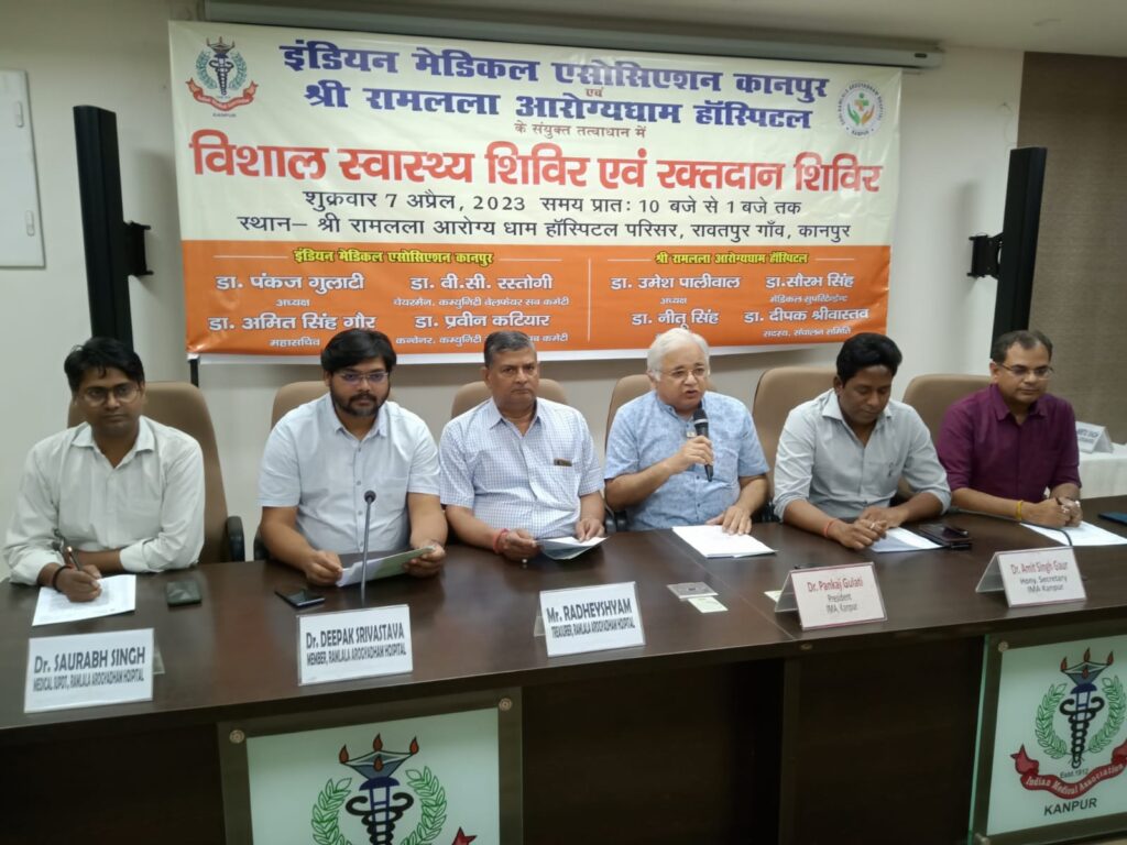 कानपुर, इंडियन मेडिकल एसोसिएशन कानपुर शाखा एवं रामलला आरोग्यधाम हॉस्पिटल के संयुक्त तत्वधान में शुक्रवार को विश्व स्वास्थ दिवस के अवसर पर एक विशाल स्वास्थ्य शिविर एवं रक्तदान शिविर के अयोजन के सम्बन्ध में एक पत्रकार वार्ता का आयोजन आईएमए भवन के समीनार हाल में किया गया।
