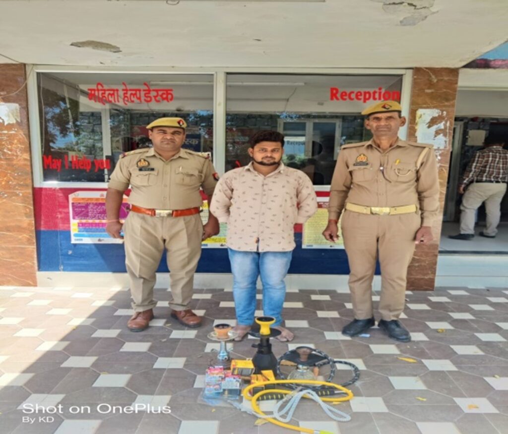 कानपुर, पुलिस आयुक्त कमिश्नरेट कानपुर द्वारा अपराध एवं अपराधियों के विरुद्ध चलाये जा रहे अभियान के क्रम मे पुलिस उपायुक्त पश्चिम व सहायक पुलिस उपायुक्त पश्चिम के निर्देशन में एवं सहायक पुलिस आयुक्त पनकी के कुशल पर्यवेक्षण में अपराध एवं अपराधी की रोकथाम एवं धरपकड़ अभियान के क्रम में पनकी पुलिस अनि सुभाष चन्द चौकी प्रभारी एमआईजी हमराह 604 शिवनाथ सिंह माना देख भाल क्षेत्र चैकिंग संदिग्ध व्यक्ति वाजन रोकथाम जुर्म जरायम चौकी क्षेत्र MIG से अभियुक्त अमन सविता पुत्र सविता निवासी आरी 246 योगेन्द्र बिहार नौबस्ता थाना नौबस्ता कानपुर नगर उम्र करीब 23 वर्ष को गिरफ्तार किया गया जिसके कब्जे से एक प्लास्टिक की बोरी शील सर्व मोहर जिसमे 3 अदद हुक्का मम चिलम म पाइप दो बन्द व तीन खुले क्वाइल के पैकेट 7 बन्द फ्लेवर और एक चिमटा मय सिल्वर पेपर बरामद किया गया। जिसके आधार पर थाना स्थानीय पर मु0अ0स0 142/23 धारा 4/21 सिगरेट अन्य तंबाकू उत्पादन (विज्ञापन पूर्ति कन्द व्यापार तथा वाणिज्य उत्पादन और वितरण विनियम अधिनियम 2003) थाना पनकी कानपुर नगर पंजीकृत किया गया। अभिगण उपरोक्त को गिरफ्तार कर विधिक कार्यवाही की जा रही है।