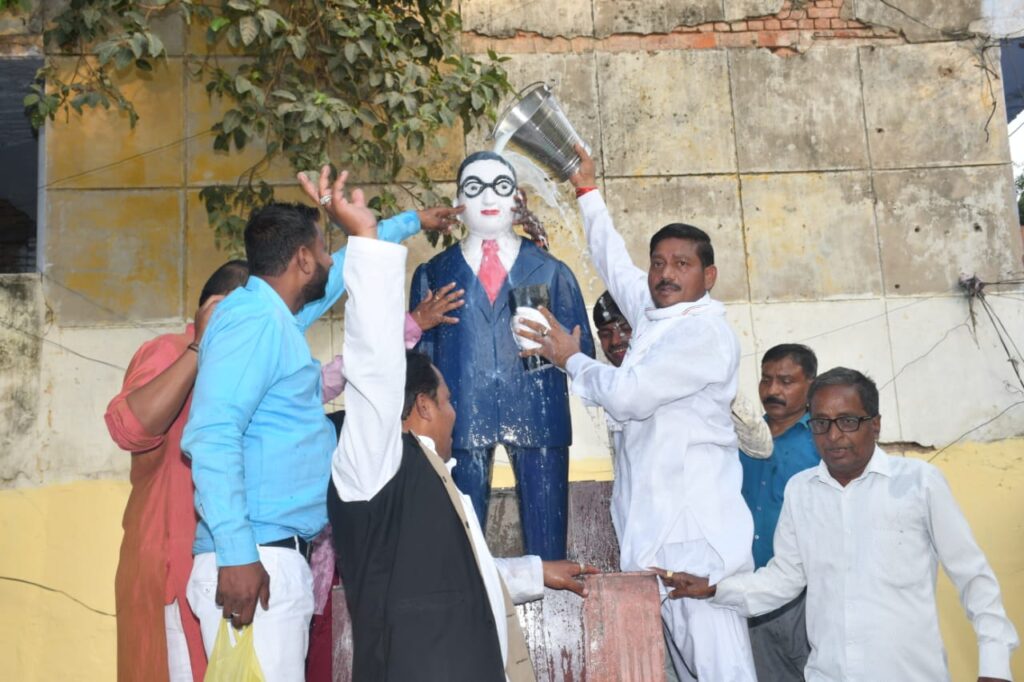 कानपुर, जिला कांग्रेस कमेटी कानपुर नगर ग्रामीण अनुसूचित जाति विभाग के तत्वधान में जिला अध्यक्ष सुनील बाल्मीकि के नेतृत्व में दलितों के मसीहा संविधान निर्माता भारत रत्न बाबासाहब डॉक्टर भीमराव अंबेडकर के 132 वीं वर्षगांठ के उपलक्ष में वह पूर्व संध्या पर कैंप कार्यालय ग्वालटोली बाल्मीकि बस्ती से वाहन जुलूस के हुजूम के साथ भव्य विशाल शोभायात्रा निकाली गई! जिसमें कि कानपुर शहर की समस्त अंबेडकर प्रतिमाओ पर जाकर दुध वा गंगाजल से जलभिषेक किया! तथा उनकी प्रतिमाओं को साफ कर माल्यार्पण किया! शोभायात्रा विभिन्न विभिन्न बाल्मिकी बस्ती यों से गुजरती हुई फूल बाग नाना राव अंबेडकर प्रतिमा पर समापन किया! तथा सुनील बाल्मीकि ने यात्रा के माध्यम से पूरे देश को अंबेडकर जयंती की बहुत-बहुत बधाई व शुभकामनाएं दी और कहा इस देश में भाजपा सरकार तथा आर. एस. एस. द्वारा देश से संविधान खत्म करना चाहते हैं! समस्त लोगों को सड़कों पर उतर कर किसान आंदोलन करना चाहिए! भारतीय जनता पार्टी इस देश से दलितों को खत्म करना चाहती है यदि इनकी 2024 में केंद्र में सरकार बनी तो संविधान के साथ दलितों को भी यह देश से खत्म कर देंगे ! पर हम दलित वर्ग के लोग ऐसा नहीं होने देंगे सड़कों पर उतर के यह सरकार के विरुद्ध भीषण आंदोलन करने का कार्य करेंगे! और कहा कि हमारे नेता श्री राहुल गांधी देश की लड़ाई लड़ रहे हैं हम उनकी लड़ाई पर उनके साथ! शोभा यात्रा में प्रमुख रूप से उपस्थित गोलू सिसोदिया त्रिवेदी दीक्षित अरुण पन्नालाल गुड्डू विकास उनका संजय कठेरिया अरविंद दिवाकर इत्यादि लोग मौजूद रहे!