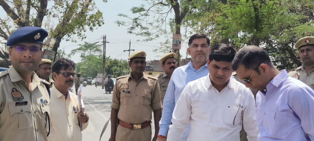 संत कबीर नगर 18 अप्रैल 2023 जिला मजिस्ट्रेट/जिला निर्वाचन अधिकारी संदीप कुमार व पुलिस अधीक्षक सत्यजीत गुप्ता द्वारा नगर निकाय सामान्य निर्वाचन-2023 के तहत जनपद संतकबीरनगर में चल रही नामांकन प्रक्रिया को शांतिपूर्ण वातावरण में संपन्न कराने के दृष्टिगत तहसील धनघटा में चल रही नामांकन प्रक्रिया व सुरक्षा व्यवस्था का जायजा लिया गया तथा सम्बन्धित को आवश्यक दिशा निर्देश दिए गए।