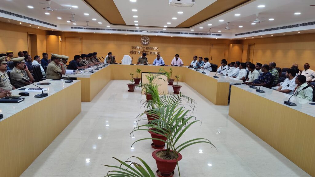 संत कबीर नगर 20 अप्रैल 2023 जिलाधिकारी संदीप कुमार की अध्यक्षता में रमजान माह, ईद-उल-फितर, अक्षय तृतीया एवं परशुराम जयंती त्योहारो को आपसी भाई-चारे, शांति एवं सौहार्दपूर्ण माहौल में मनाने के दृष्टिगत जिला शांति समिति की बैठक कलेक्ट्रेट सभागार में आयोजित हुई। जिलाधिकारी संदीप कुमार ने जनपद की शांतिप्रिय एवं सौहार्दपूर्ण वातावरण की परम्परा को बनाये रखते हुए त्योहारों को आपसी ताल-मेल, अमन पसंदी से भाई-चारें के साथ मनाने की अपील किया। उन्होंने जनपद के विभिन्न इलाकों में कानून व्यवस्था, बिजली, पानी, साफ-सफाई एवं अन्य आवश्यक सुविधाओं के बारे में उपस्थित सम्भ्रान्त नागरिकों, धर्मगुरू एवं समिति के सदस्यों से फीडबैक प्राप्त करते हुए आवश्यकतानुसार सम्बंधित विभागीय अधिकारियों को निर्देशित किया। बैठक में उपस्थित धर्मगुरू सहित विभिन्न क्षेत्रों से आये हुए सम्भ्रान्त नागरिकों ने प्रशासन के साथ अपने सामान्य परिचय के दौरान अपने-अपने क्षेत्रों में अमन चैन, आपसी सौहार्द एवं शांतिपूर्ण तरीके से त्योहारो को मनाये जाने की परम्परा की याद दिलाते हुए आगामी त्योहारो को भी मिल-जुल कर मनाये जाने का आश्वासन दिया। जिलाधिकारी ने कहा कि हम सब को त्योहार मनाने के दौरान कोविड-19 संक्रमण से बचाव हेतु सुरक्षात्मक उपायों एवं निर्धारित गाइड लाइन का अनुपालन करने एवं इसके सम्भावित संक्रमण से बचने के लिए निरंतर सतर्क रहने की आवश्यकता है। उन्होंने किसी भी समस्या अथवा शिकायत की दशा में तत्काल प्रशासन/पुलिस प्रशासन को सूचित करने की भी अपील की।