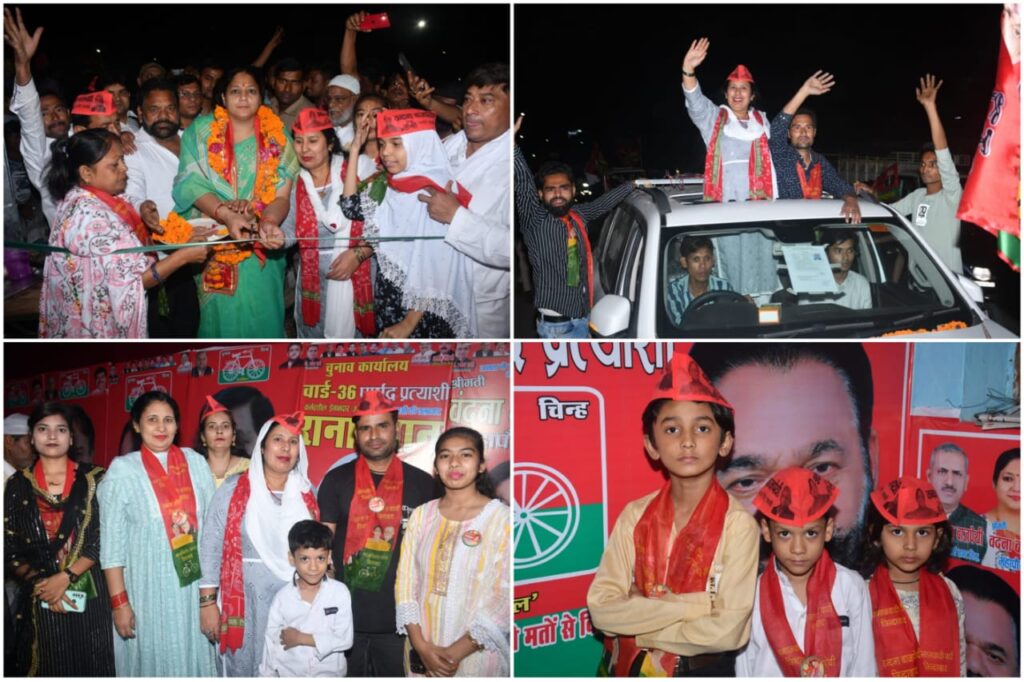 कानपुर, बाकरगंज चौराहा, असलम टी स्टाल बगाही चौराहा कर्बला चौराहा तिकोनिया पार्क अजीतगंज कार्यालय मेयर प्रत्याशी समर्थकों के साथ भारी भीड़ से पहुंची समाजवादी पार्टी वार्ड 36 पार्षद प्रत्याशी राना खान पति शमी शाह के कार्यालय का उद्घाटन सपा मेयर प्रत्याशी वंदना बाजपेई ने किया! मेयर प्रत्याशी वंदना बाजपाई पार्षद प्रत्याशी राना खान पति शमी शाह के लिए जनता से अपील की कहा कि समाजवादी पार्टी के मेयर एवं पार्षद प्रत्याशी को भारी मतों से विजई बनाकर शहर एवं क्षेत्र की बदहाली को बहाली में बदलने की मदद करें! मेयर प्रत्याशी ने वार्ड 36 पार्षद प्रत्याशी के साथ जगह-जगह रोड शो का आयोजन किया! क्षेत्रीय जनता ने जगह जगह सपा मेयर एवं सपा वार्ड 36 पार्षद प्रत्याशी का भव्य स्वागत किया! कार्यक्रम का संचालन सरवन खान ने किया! इस अवसर पर शहाना, शबीना रश्मी गीता सबा, रफन उद्दीन मंसूरी अमीन बाबा अरशद ने तानिया नियाज उस्मानी वकील उस्मानी शकील सलमानी ताजवर, इत्यादि लोग मौजूद रहे!