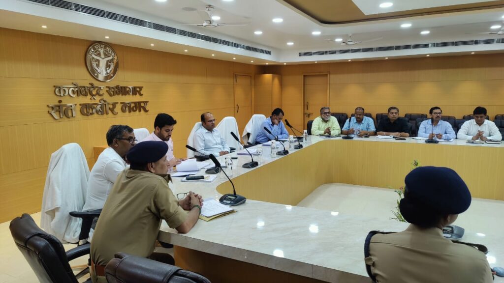 संत कबीर नगर 07 मई 2023 नगर निकाय सामान्य निर्वाचन-2023 को सकुशल, शांतिपूर्ण, निष्पक्ष एवं पारदर्शी रूप से सम्पन्न कराये जाने हेतु राज्य निर्वाचन आयोग द्वारा नियुक्त माननीय प्रेक्षक पवन अग्रवाल की अध्यक्षता में 6 मई 2023 देर सांय कलेक्ट्रेट सभागार में उप जिला निर्वाचन अधिकारी अभिनव रंजन श्रीवास्तव एवं समस्त प्रभारी अधिकारी नगरीय निकाय सामान्य निर्वाचन-2023 एवं सम्बंधित अधिकारियों के साथ बैठक आयोजित हुई।