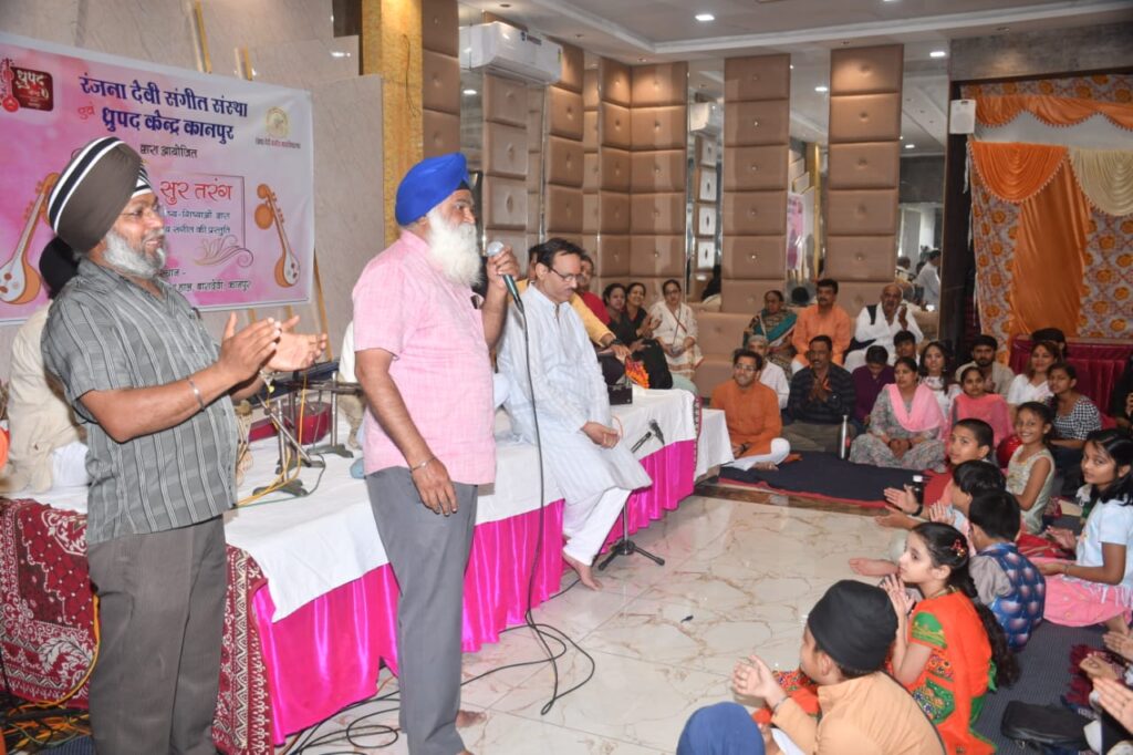 कानपुर, रंजना देवी संगीत संस्था एवं संगीत नाटक एकेडमी नई दिल्ली ध्रुपद केन्द्र के संयुक्त प्रस्तुति “सुर-तरंग” संगीत सम्मेलन नामदेव गुरूद्वारा प्रेक्षागार में विधिवत सम्पन्न हुआ। इस कार्यक्रम में ध्रुपद केन्द्र कानपुर तथा रंजना देवी संगीत महाविद्यालय के नवोदित कलाकारों ने अपनी सकुशल प्रस्तुति दी सभी कलाकार पं० विनोद कुमार द्विवेदी (वरिष्ठ एवं प्रख्यात ध्रुपद धमार गायक) तथा आयुष द्विवेदी (युवा ध्रुपद गायक) के संरक्षण में गुरू शिष्य परम्परा से संगीत सीख रहे है। इस विशेष कार्यक्रम में लगभग 100 कलाकारों ने भारतीय शास्त्रीय संगीत की प्रस्तुति दी इन प्रस्तुतियों में गायन की विभिन्न शैलिया जैसे-धुपद, ख्याल, चतुरंग, भजन, गीत इत्यादि शामिल थे जो कि बहुत ही आकृषित रूप से प्रस्तुत किये गये। कार्यक्रम का विशेष आकर्षण आशुतोष पाण्डेय, अक्षय शुक्ला, अनुष्का बाजपेयी, चेतन गुप्ता, अनुराग वर्मा, ऋषभ शुक्ला, जसप्रीत सिह इत्यादि का गायन रहा। इस कार्यक्रम में गुरूकूल के देश विदेश के शिष्य-शिष्याओं ने आनलाइन एवं आफैँ लाइन माध्यम से अपनी प्रस्तुति देकर प्रतिभाग करा ।