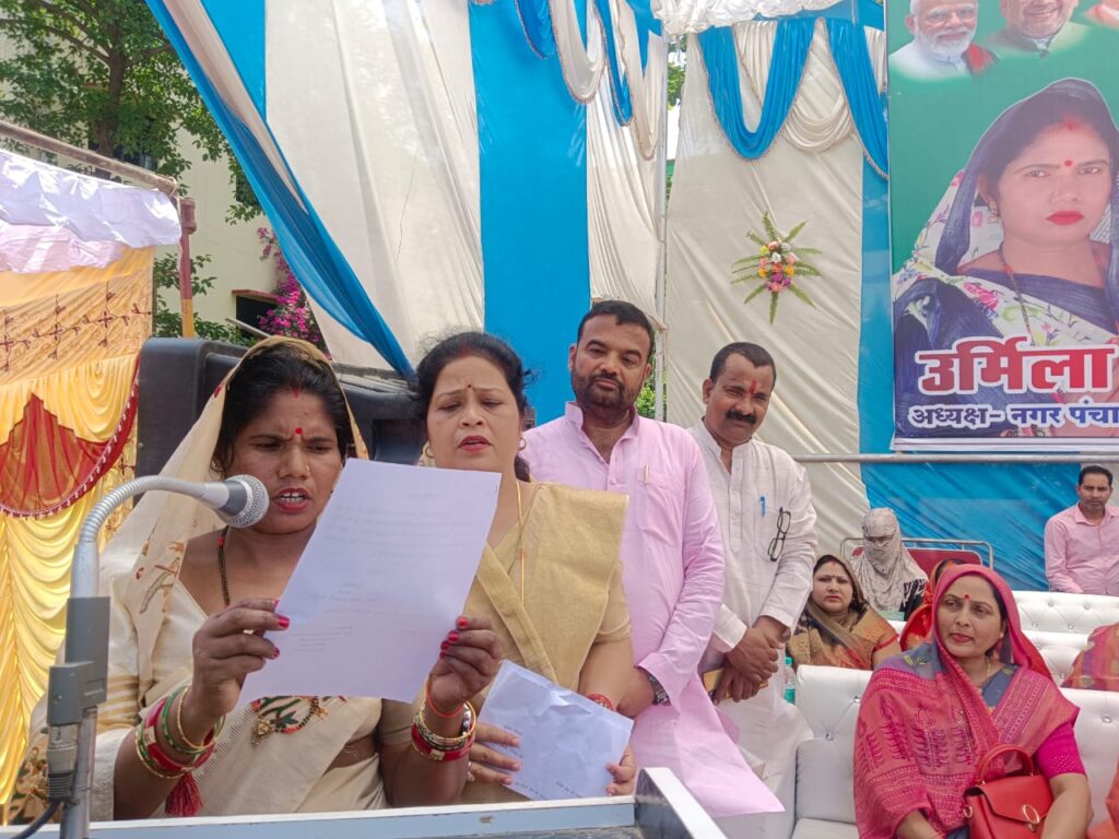 बस्ती, बनकटी….. शनिवार को प्रदेश सरकार के निर्देशन में उप जिलाधिकारी बस्ती विनोद कुमार पान्डेय द्वारा चेयरमैन उर्मिला देवी समेत 15 वार्ड सभासदों को सीडीए एकेडमी मथौली बनकटी के प्रांगण में हजारों की भीड़ के बीच पद और गोपनीयता की शपथ दिलाई गई।