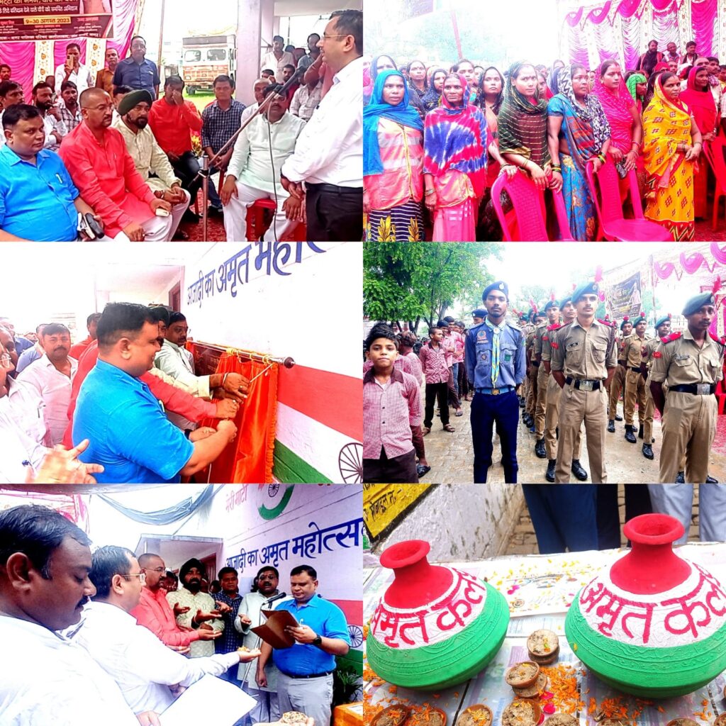 संतकबीरनगर : भारत के यशस्वी प्रधानमंत्री नरेंद्र मोदी एवं उत्तर प्रदेश के मुख्यमंत्री योगी आदित्यनाथ के निर्देश के क्रम में आजादी के अमृत महोत्सव के समापन पर 9 अगस्त से 31 अगस्त तक “मेरा माटी मेरा देश” अभियान चलाया जा रहा है। जिसके क्रम में ख़लीलाबाद नगर पालिका द्वारा जूनियर हाई स्कूल खलीलाबाद के प्रांगण में “मेरा माटी मेरा देश ” कार्यक्रम का आयोजन किया गया।जिसके मुख्य अतिथि अपर जिलाधिकारी जयप्रकाश रहे। इस दौरान अपर जिलाधिकारी द्वारा शहीद स्मारक का लोकार्पण किया गया। जिसके बाद उपस्थित नगरपालिका कर्मचारियों ,सभासदों व उपस्थित भाजपा कार्यकर्ताओं को पंचप्रण का शपथ भी दिलाया गया। इस अवसर पर भारतीय जनता पार्टी के जिला उपाध्यक्ष ज्ञानेश मिश्रा सभासद प्रतिनिधि पंकज मिश्रा सभासद प्रतिनिधि राजेश कुमार वर्मा वईओ खलीलाबाद विनय कुमार मिश्रा, उमेश कुमार, गोरख सिंह साथ साथ खलीलाबाद नगर पालिका परिषद के तहत चुने गए वार्ड सभासद गण के साथ,सुधांशू सिंह,बनर्जीलालअग्रहरि,सतविंदर पाल, एवं नगरपालिका सफ़ाई कर्मी,एन सी सी, कैडेट्स तथा जूनियर हाई स्कूल के स्काउट के बच्चे उपस्थित रहे।