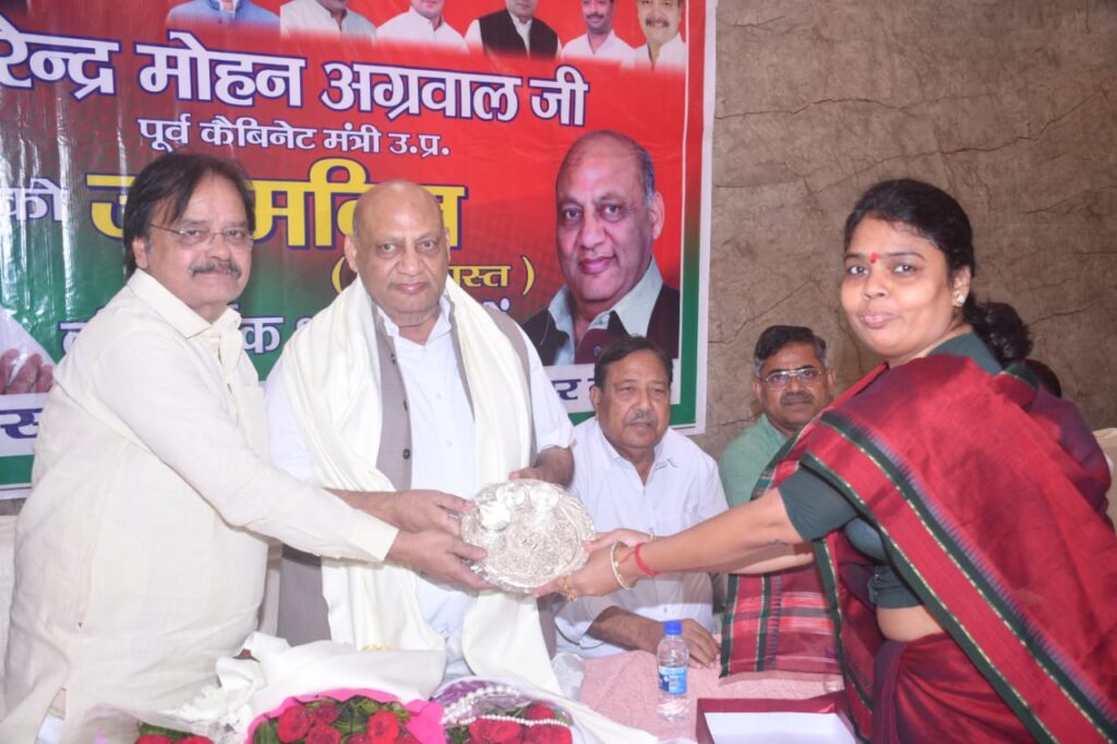 कानपुर, समाजवादी पार्टी के वरिष्ठ नेता एवं पूर्व कैबिनेट मंत्री सुरेंद्र मोहन अग्रवाल का जन्मदिन सिविल लाइंस स्थित होटल में आयोजित किया गया जिसमें भारी संख्या में व्यापारी गण उपस्थित हुए इस अवसर पर व्यापारियों के हित की लड़ाई करने वाली महिला सेविका अपर्णा जैन ने पूर्व कैबिनेट मंत्री को जन्मदिन पर फूल माला पहनाकर चांदी की थाली भेंट की अपर्णा जैन ने कहा कि समाजवादी पार्टी कानपुर नगर की रीड की हड्डी जिनको लोग बाबूजी के नाम से पुकारते हैं इन्होंने समाजवादी पार्टी के पूर्व राष्ट्रीय अध्यक्ष एवं पूर्व मुख्यमंत्री स्वर्गीय मुलायम सिंह यादव के साथ समाजवादी पार्टी को कंधे से कंधा जोड़कर एक नई दिशा दिखाने का काम किया आज उनका जन्मदिन है सभी समाजवादी पार्टी के व्यापारी गण लंबी आयु की प्रार्थना करते हैं! जन्मदिन के अवसर पर नगर अध्यक्ष हाजी फजल महमूद, मोइन खान, नसरुद्दीन सिद्दीकी, मिंटू यादव, पूर्व विधायक रामकुमार, मोहम्मद शरीफ. नंदलाल जायसवाल, राजेंद्र जयसवाल, आदि लोग मौजूद रहे!