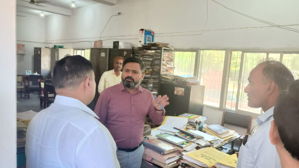 संत कबीर नगर 18 सितम्बर 2023 जिलाधिकारी महेन्द्र सिंह तंवर द्वारा विकास भवन संत कबीर नगर का आकस्मिक निरीक्षण किया गया। जिलाधिकारी द्वारा ग्रामीण अभियन्त्रण विभाग विंग की तरफ निरीक्षण के समय दुर्गन्ध आने पर असंतोष व्यक्त किया गया तथा सही कराने हेतु निर्देशित किया गया। जिला विकास कार्यालय.. एन०आर०एल०एम० विभाग, मनरेगा, मनरेगा वी०सी० कक्ष. डी०आर०डी०ए०, समाज कल्याण विभाग, लघु सिचाई विभाग, युवा कल्याण विभाग, पंचायती राज विभाग, अल्पसंख्यक विभाग, दिव्यांग जन कल्याण विभाग, सहकारिता विभाग, कृषि विभाग, जिला अर्थ एवं संख्याधिकारी कार्यालय, पिछड़ा वर्ग कल्याण विभाग, जिला कार्यक्रम कार्यालय, मत्स्य पालन विभाग आदि समस्त कार्यालयों का निरीक्षण के उपरान्त साफ सफाई एवं कार्यालय व्यवस्था पर संतोष व्यक्त किया गया। निरीक्षण के उपरान्त जिलाधिकारी द्वारा मुख्य विकास अधिकारी कार्यालय में बैठक कर विभिन्न विभागों द्वारा संचालित योजनाओं के क्रियान्वयन के सम्बन्ध में नियमानुसार कार्यवाही करने के निर्देश दिये गये।