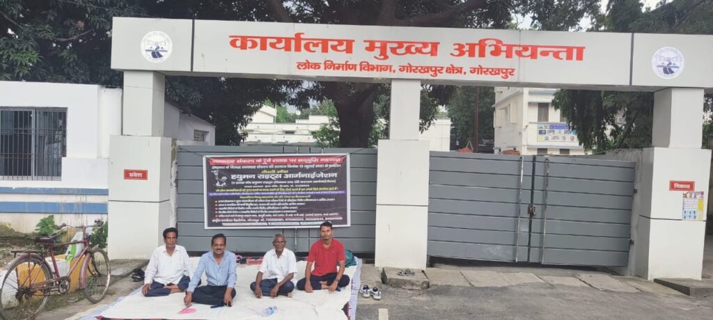 भ्रष्टाचार में डूबे मुख्यमंत्री के गृह नगर में तीसरी आंख मानवाधिकार संगठन द्वारा प्रचलित सत्याग्रह संकल्प के दूसरे चरण में लोक निर्माण विभाग के विरुद्ध 5 अक्टूबर 2021 से प्रचलित सत्याग्रह संकल्प संदर्भित मुख्य सचिव उत्तर प्रदेश को संबोधित 37 बिंदुओं का प्रेषित ज्ञापन पर वर्षों कार्रवाई नहीं किए जाने के उपरांत उक्त ज्ञापन मय संलग्नक मुख्य सचिव, भारत सरकार नई दिल्ली के समक्ष वैधानिक कार्रवाई हेतु प्रेषित किया गया था, जिसे मुख्य सचिव, भारत सरकार नई दिल्ली ने लेने से इनकार करते हुए संगठन को वापस कर दिया गया, जिसके उपरांत सत्याग्रह से भयभीत भ्रष्ट अभियंताओं द्वारा जिला व पुलिस प्रशासन के संरक्षण में लोक निर्माण विभाग मुख्य अभियंता कार्यालय के मुख्य द्वार को 21 सितम्बर 2023 से बंद कर सत्याग्रहियों को मुख्य द्वार के बाहर सार्वजनिक मार्ग पर सत्याग्रह करने को विवश कर दिया है।