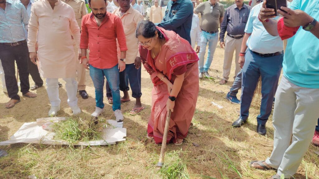 संत कबीर नगर 01 अक्टूबर 2023 मा0 राज्यमंत्री ग्राम्य विकास विभाग एवं समग्र ग्राम विकास, ग्रामीण अभियंत्रण विभाग, उ0प्र0 एवं प्रभारी मंत्री श्रीमती विजयलक्ष्मी गौतम ने ‘स्वच्छता ही सेवा-2023’ कार्यक्रम एवं कचरा मुक्त भारत अभियान के अन्तर्गत आज दिनांक 01 अक्टूबर को श्रमदान कर *‘‘एक तारीख, एक घण्टा स्वच्छता के लिये’’* अभियान में प्रतिभाग करते हुए झाडू लगाया एवं कूड़े की सफाई किया। मंत्री जी द्वारा विकास भवन परिसर एवं अम्बेडकर पार्क मटिहना में पहुॅचकर साफ-सफाई अभियान में श्रमदान किया गया। स्वच्छता अभियान में मा0 मंत्री जी के साथ मा0 संासद प्रवीण निषाद, विधायक सदर अंकुरराज तिवारी, विधायक मेंहदावल अनिल कुमार त्रिपाठी, विधायक धनघटा गणेश चौहान ने बढ़ चढ़ कर श्रमदान करते हुए झाडू एवं फावड़े के साथ परिसर एवं पार्क की साफ-सफाई किया। इस अवसर पर जिलाधिकारी महेन्द्र सिंह तंवर, पुलिस अधीक्षक सत्यजीत गुप्ता, मुख्य विकास अधिकारी संत कुमार द्वारा श्रमदान कर साफ-सफाई की गयी।
