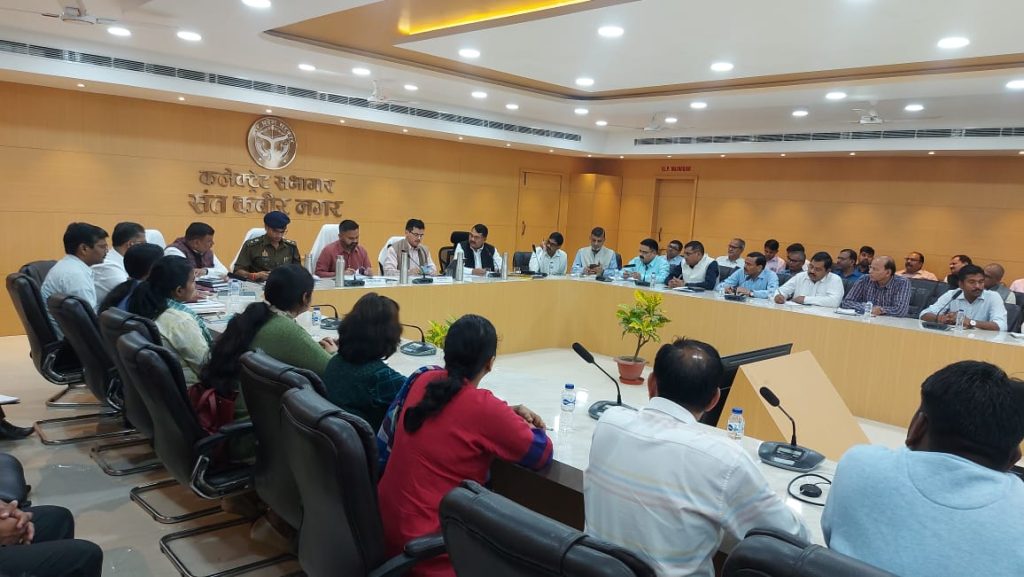 संत कबीर नगर 17 नवम्बर 2023 विकसित भारत संकल्प यात्रा (दिनांक 15 नवंबर, 2023 से 26 जनवरी 2024 तक) के सफल क्रियान्वयन के संबंध में भारत सरकार द्वारा नामित जनपद के नोडल अधिकारी/संयुक्त सचिव विद्युत मंत्रालय श्री शशांक मिश्र (आई0ए0एस0) की अध्यक्षता में कलेक्ट्रेट सभागार में योजनाओं के संतृप्तीकरण के लिए आउटरीच गतिविधियों के माध्यम से जागरूकता बढ़ाने तथा छूटे हुए पात्र लाभार्थियों को योजनाओं का लाभ दिलाये जाने के संबंध में बैठक आयोजित हुई। इस अवसर पर जिलाधिकारी महेन्द्र सिंह तंवर, पुलिस अधीक्षक सत्यजीत गुप्ता, अपर जिलाधिकारी जय प्रकाश एवं मुख्य विकास अधिकारी संत कुमार उपस्थित रहे।