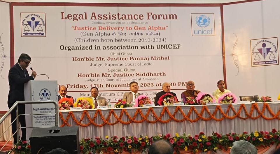 न्यायमूर्ति मित्थल यूनिसेफ और लीगल असिस्टेंस फोरम के तत्वावधान में केपी कम्यूनिटी सेंटर में संयुक्त रूप से आयोजित “जस्टिस डिलीवरी टू जेन अल्फा विषयक संगोष्ठी को बतौर मुख्य अतिथि संबोधित कर रहे थे। बाल संरक्षण संवेदनशीलता को रेखांकित करते हुए उन्होंने कहा कि मौजूदा पीढ़ी त्वरित न्याय की मांग कर रही है। आज की पीढ़ी न्यायिक प्रक्रिया में तारीख पे तारीख वाली कार्य संस्कृति बर्दाश्त करने को तैयार नहीं है। नाबालिग के विधिक संरक्षक का चुनाव करते समय हमें माता-पिता की पदीय हैसियत पर विचार करने के बजाय इस बात पर विचार करना चाहिए कि कौन बच्चे के मन को पढ़ सकता है। इसी कड़ी में विशिष्ट अतिथि न्यायमूर्ति सिद्धार्थ ने कहा कि जेन अल्फा को समझना कठिन है। सोशल मीडिया में उलझी पीढ़ी मानवीय और पारिवारिक रिश्तों से दूर हो रही है। जो चिंता का विषय है। यूनीसेफ के बाल संरक्षक विशेषज्ञ सोनीकुट्टी जार्ज ने कहा कि जेनअल्फा (2010-2024 के बीच जन्मे लोग) के संरक्षण पर बात करने के साथ ही उनकी उभरती जरूरतों और उनकी संभावनाओं पर समझ बनाने की जरूरत है।