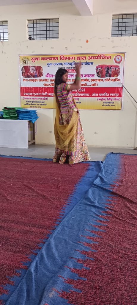 संत कबीर नगर 22 नवंबर 2023 जिलाधिकारी महेंद्र कुमार सिंह तंवर के निर्देशन में युवा कल्याण विभाग जनपद संत कबीर नगर जीव जिला युवा कल्याण अधिकारी अरुण कुमार पांडे के आयोजन में युवा उत्सव तथा सांस्कृतिक कार्यक्रम प्रभात देवी स्नातकोत्तर महाविद्यालय संत कबीर नगर में आयोजन किया गया ,