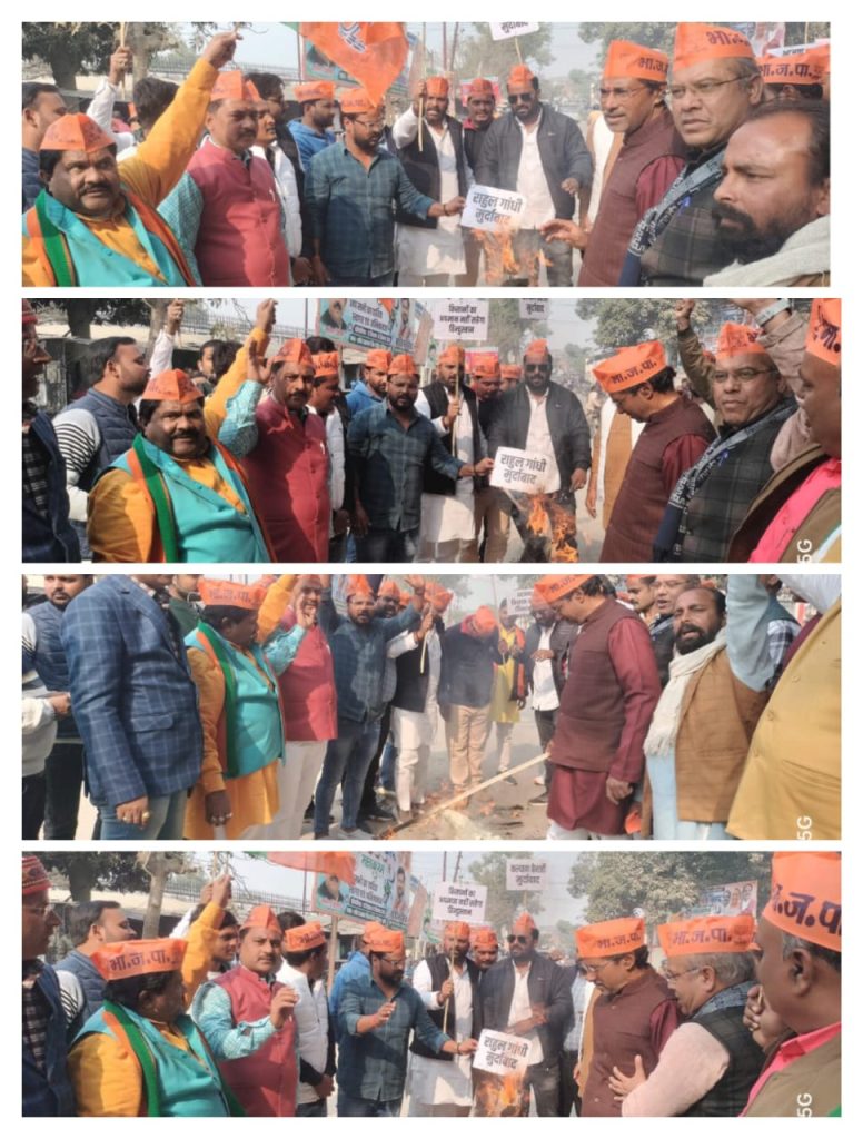 देश के उपराष्ट्रपति जगदीप धनखड़ के खिलाफ टीएमसी सांसद की आपत्तिजनक मिमिक्री करने तथा कांग्रेस सांसद राहुल गांधी द्वारा वीडियो बनाने के विरोध में भाजपा जिला एवं किसान मोर्चा बस्ती द्वारा शुक्रवार को दीवानी कचहरी चौक पर राहुल गांधी का पुतला दहन किया गया। भाजपा पदाधिकारी व कार्यकर्ताओं ने राहुल गांधी और टीएमसी सांसद के कृत्य पर कड़ी आपत्ति दर्ज करायी। उपराष्ट्रपति के किये गये अपमान को अक्षम्य बताया और नाराजगी व्यक्त करते हुये जोरदार नारेबाजी की।