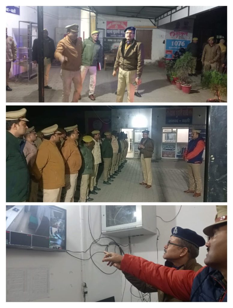 बस्ती जनपद में अपर पुलिस अधीक्षक बस्ती ओम प्रकाश सिंह द्वारा आज दिनांक 02.01.2023 को क्षेत्राधिकारी सदर की उपस्थिति में थाना पुरानी बस्ती का औचक निरीक्षण किया गया। निरीक्षण के दौरान थाना कार्यलय, हवालात, मेस, मालखाना, महिला हेल्प डेस्क, साइबर हेल्प डेस्क, CCTNS कार्यलय आदि का निरीक्षण कर अभिलेखो के रख- रखाव व थाना परिसर की साफ-सफाई हेतु संबंधित को आदेशित कर समस्त उपनिरीक्षक गण व पुलिस कर्मियों संग गोष्ठी कर ग्राम सुरक्षा समिति, आपरेशन त्रिनेत्र, HS निगरानी, रजिस्टर नंo8, रात्रि गश्त, बैंक चेकिंग आदि के संबंध में आवश्यक दिशा-निर्देश दिया गया।