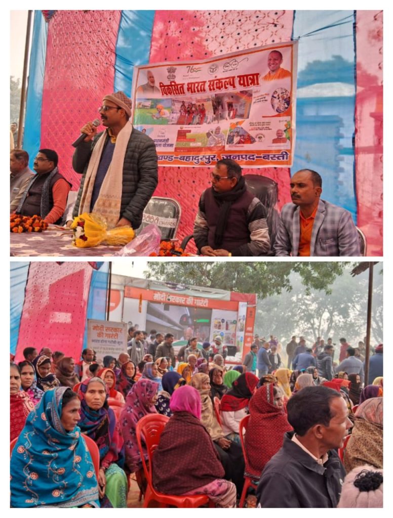 बस्ती जनपद के बहादुरपुर ब्लॉक अंतर्गत ग्राम सभा पिपरौला मे भारत विकसित यात्रा रथ पिपरौला गाव मे पहुंच कर लोगो की समस्या को सुनकर समाधान अधिकारी कर्मचारी गण अपने अपने विभागों से संबंधित समस्या का निस्तारण किये।सभा को सम्बोधित करते हुए बतौर मुख्य अतिथि बस्ती जनपद के सांसद माननीय हरीश द्विवेदी ने कहा कि इस वाहन को देश के प्रधान मंत्री आदरणीय नरेंद्र मोदी जी का गारंटी वाला रथ है।इस रथ को गाव गाव भेजने का मकसद सिर्फ यह है कि यदि कोई लाभार्थी को सरकार के योजनाओ से वँचित है उसे।गाव मे ही उस ब्यक्ति का समाधान उसी गाव मे अधिकारी गण कर दे।बैठक मे मंडल अध्यक्ष परमानंद सिंह, ब्लॉकप्रमुख प्रतिनिधि शैलेन्द्र दुबे, वरिष्ठ भारतीय जनता पार्टी के पदाधिकारी के,के,दुबे, कन्हैया दुबे, बालकृष्ण त्रिपाठी,महिला मंडल अध्यक्ष साधना सिंह, दिलीप शर्मा,रामचंद्र चौधरी,श्रुति अग्रहरी,पवन दुबे मंडल महामंत्री अनिल कुमार श्रीवास्तव आदि कार्य कर्ता गण मौजूद थे।