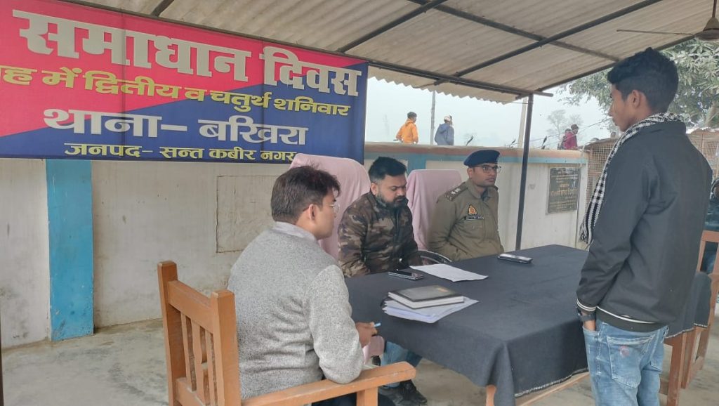 संत कबीर नगर : जिलाधिकारी महेन्द्र सिंह तंवर व पुलिस अधीक्षक सत्यजीत गुप्ता* द्वारा संयुक्तरुप से थाना बखिरा तथा अपर पुलिस अधीक्षक शशिशेखर सिंह द्वारा थाना दुधारा पर आयोजित थाना समाधान दिवस पर फरियादियों की समस्याओं को सुना गया ।