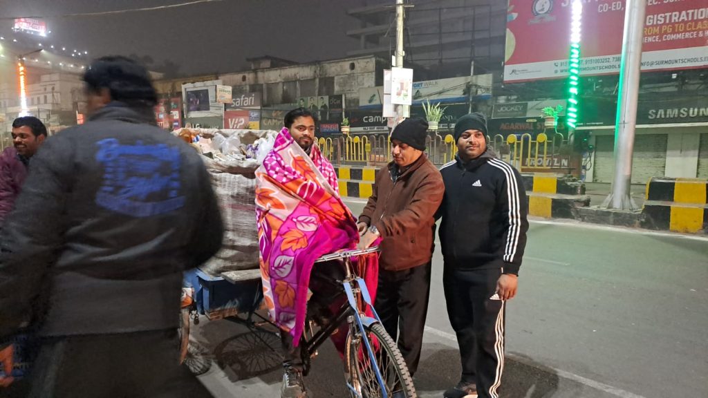 14 -1-2024 की रात 10 30 से-1230 बजे तक कड़ाके की ठंड को देखते हुए अपनी जान की परवाह न करके इंडियन ह्यूमन राइट संगठन के राष्ट्रीय अध्यक्ष मोहम्मद रजी अपने संगठन के पदाधिकारियों के साथ ठंड से परेशान गरीब से लोगों को चिन्हित करके गोलघर चेतना तिराहा काली मंदिर नको बाबा आस्ताने धर्मशाला चौराहा यातायात चौराहा रेलवे स्टेशन बस स्टेशन पर सैकड़ों की संख्या मे संगठन द्वारा कंबल वितरण किया गया इस से पहले हर साल की तरह इस साल भी 1 जनवरी से कार्यक्रम शुरू हुआ और कई महलों में चिन्हित करके दीवान बाजार बख्शी पुर चौराया गोला अलीनगर बेनीगंज रुद्रपुर जाफर बाजार उच्च वा घासी कटरा घंटाघर उर्दू बाजार में आज तक टोटल कंबल 400 की संख्या में इंडियन ह्यूमन राइट संगठन के पदाधिकारियों द्वारा बाटा गया कार्यक्रम मुख रूप से सहयोग करता रहे s प्रा डायरेक्टर श्री अतुल सर्राफ जिन्होंने 50 कंबल संगठन को दिया बाकी संगठन के पदाधिकारियों के संयोग से कंबल बाटा गया कार्यक्रम कराया असहयोग करता रहे इंडियन ह्यूमन राइट संगठन के राष्ट्रीय अध्यक्ष मोहम्मद रजी राष्ट्रीय उपाध्यक्ष मोहम्मद साहब उसेन संरक्षक उत्तर प्रदेश हसन जमाल बबुआ भाई संरक्षक डॉक्टर जैद अफाक जिलाध्यक्ष राजेश पांडे महानगर अध्यक्ष अनिल जायसवाल महानगर उपाध्यक्ष राजू शर्मा महानगर उपाध्यक्ष सुशील अग्रहरी महानगर उपाध्यक्ष डॉ राशि द हुसैन उपाध्यक्ष सदाब खान उपाध्यक्ष मेंहदी हसन उपाध्यक्ष बाद रुल हक महानगर मंत्री करार मिर्जा जिला संगठन मंत्री अंजुम तारीख सय्यद शादाब हाशमी मीडिया इंचार्ज तनवीर आलम सिद्दीकी फैसल हुसैन लीगल एडवाइजर श्री संजय श्रीवास्तव एडवोकेट लीगल एडवाइजर मिनहाज अहमद एडवोकेट उपस्थित रहे। आप सभी सम्मानित पदाधिकारियों को बधाई देता हूं क्योंकि आपने अपने देश के लिए समाज सेवा देश सेवा का कार्य किया है इसके लिए आप सभी पदाधिकारियों को आप सभी सम्मानित साथियों को संगठन की तरफ से बहुत-बहुत बधाई।