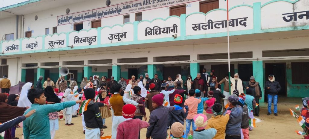 जामिया अरबिया अहलेसुन्नत मिसबाहुलउलूम बिधियानी खलीलाबाद में 75वां गणतन्त्र दिवस हर्षोल्लास के साथ मनाया गया।प्रबंधक श्री हाजी हबीबुल्लाह खां अजीजी ने झन्डारोहण किया।इस अवसर पर विभिन्न सांस्कृतिक कार्यक्रम आयोजित हुए।प्रधानाचार्य मोहम्मद ताहिर हुसैन ने देश में रहने वाले हर व्यक्ति को उसके संवैधानिक अधिकार के बारे में विस्तार से प्रकाश डाला।सहायक अध्यापक श्री अब्दुल वाहिद ने देश में सुख-समृद्धि व मसायल को लोकतांत्रिक तरीके से हल करने के लिए उपस्थित सभी लोगों को संकल्प दिलाया।इस अवसर पर आस मोहम्मद खान,नूर मोहम्मद,मोहम्मद रफीक अजीजी,सादिक अली,सब्बीर अली,सय्यद अली,अब्दुल अजीज,मोहम्मद हारून,नूर मोहम्मद मंसूरी,जाकिर अली,अहमद अली, हाजी शौकत अली, मोहम्मद लीक,मोहम्मद नूरी मोहम्मद शमीमआदि लोग मौजूद रहे।