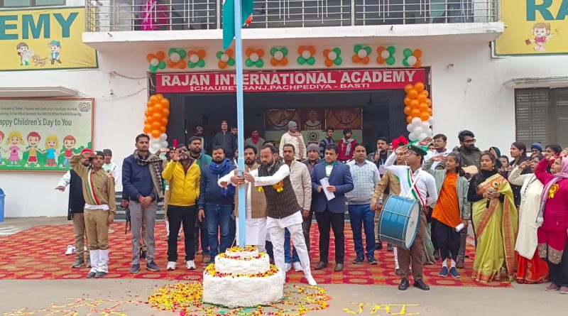बस्ती जनपद में राजन इंटरनेशनल एकेडमी में गणतंत्र दिवस का पर्व उत्साह और सांस्कृतिक कार्यक्रमों के साथ मनाया गया। मुख्य अतिथि खलीलाबाद संत कबीर नगर के पूर्व विधायक दिग्विजय नारायण चतुर्वेदी “जय चौबे” ने ध्वजारोहण करने के बाद छात्रों को सम्बोधित करते हुये कहा कि लम्बे संघर्ष, बलिदान के बाद देश आजाद हुआ और 26 जनवरी 1950 को देश ने लिखित संविधान अंगीकार किया। 75 वां गणतंत्र देश के लिये महत्वपूर्ण है। देश कई मोर्चो पर प्रगति की ओर है। अमर सेनानियों के संकल्पों को पूरा करना हम सबका दायित्व है।