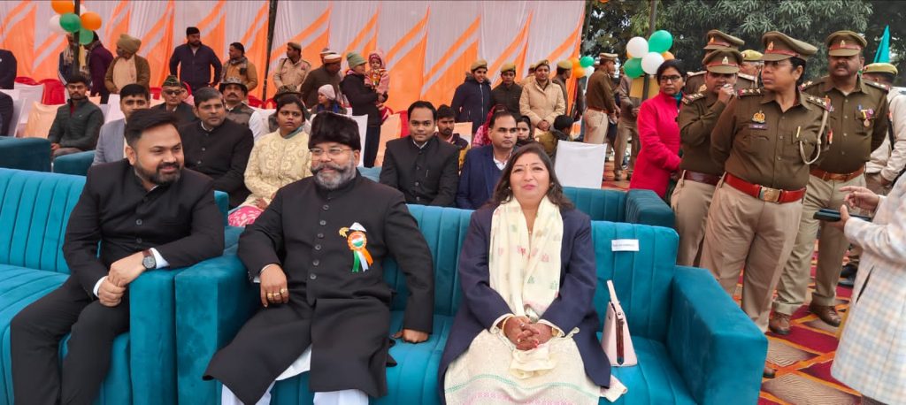 मुख्य अतिथि मा0 श्रीमती विजय लक्ष्मी गौतम ने अपने सम्बोधन में भारत को आजादी दिलाने में बीर सपूत क्रातिकारियों और महापुरूषों को श्रद्धा सुमन अर्पित करते हुए कहा कि यही वह दिन है जब हमारे देश का संविधान लागू हुआ था। 26 जनवरी 1950 से ही हमारे देश में गणतंत्र दिवस बनाया जाता है। हमारे संविधान में सभी धर्मो, जातियों, एवं वर्गाे का सम्मान एवं स्वाभिमान समाहित है। उन्होंने देश की सीमाओं पर वाह्य शक्तियों की कुदृष्टि का मुहतोड़ जबाव देने वाले जाबांज सैनिकों और आंतरिक सुरक्षा एवं शांति व्यवस्था के प्रहरी पुलिस जवानों को शुभकामनाएं एवं बधाई देते हुए देश में गणतंत्र के फलने-फूलने की कामना की, कहा कि हमारे पुलिस के जवानों की निष्ठा एवं समर्पण के साथ सुरक्षित और भयमुक्त वातावरण उपलब्ध कराने का ही परिणाम है कि आज दुनिया भर से निवेशक उत्तर प्रदेश की ओर अपना रूख कर रहें है। उन्होंने केन्द्र एवं प्रदेश सरकार द्वारा किसानों, गरीबों एवं बेरोजगारों के लिए चलाई जा रही विभिन्न योजनाओं पर भी प्रकाश डाला। उन्होंने कहा कि किसी भी संकट के दौरान हमारे पुलिस जवानों ने अपने कर्तव्य, मानव सेवा एवं देशभक्ति का मिसाल कायम किया है। आयोजित समारोह में सराहनीय कार्य करने वाले पुलिस अधिकारियों, कर्मियों, छात्र/छात्राओं सहित शहीदों के परिवारों को सम्मानित किया गया। इस दौरान बच्चों ने खूबसूरत अंदाज में सांस्कृतिक कार्यक्रम एवं नृत्य आदि प्रस्तुत किया। मा0 मंत्री जी द्वारा छात्र/छात्राओं द्वारा मनमोहक प्रस्तुति पर उन्होंने प्रसंशा पत्र देकर सम्मानित किया गया।