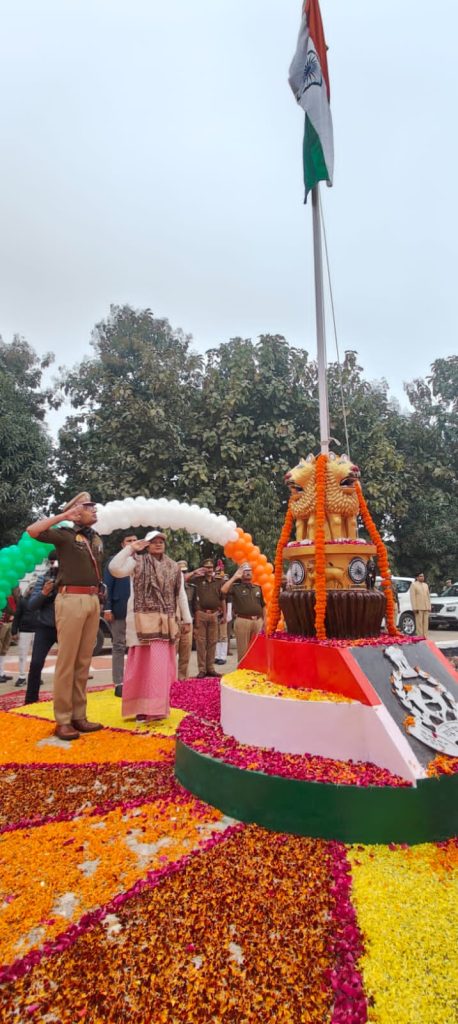 👉 75 वें गणतंत्र दिवस के अवसर पर मा0 प्रभारी मंत्री विजय लक्ष्मी गौतम ने पुलिस लाईन में किया ध्वजारोहण।