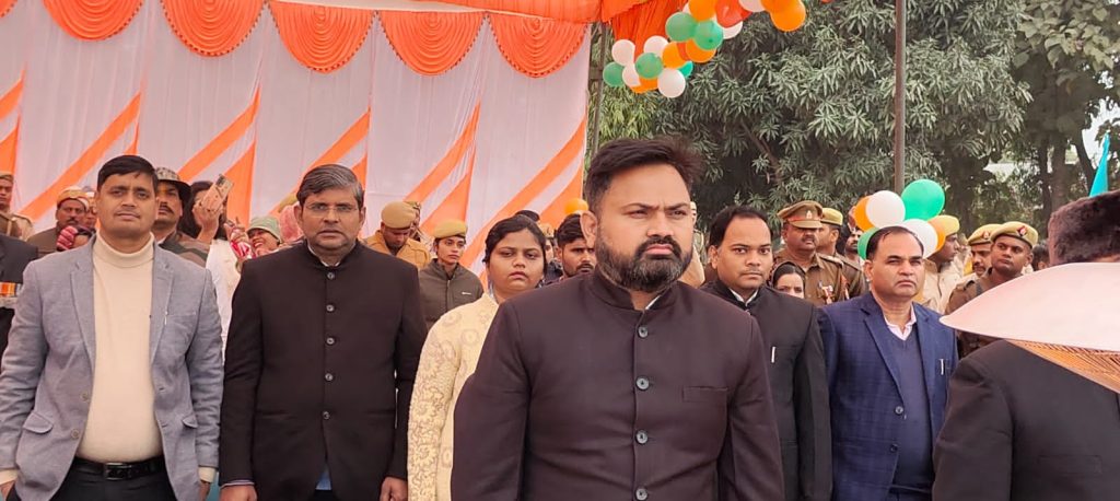 संत कबीर नगर 26 जनवरी 2024 75वें गणतंत्र दिवस के शुभ अवसर पर पुलिस लाइन में महत्वपूर्ण कार्यक्रम आयोजित किये गये। यहां पर मुख्य अतिथि के रूप में मा0 राज्य मंत्री (स्वतंत्र प्रभार) एवं जनपद के प्रभारी मंत्री श्रीमती विजय लक्ष्मी गौतम ने ध्वजारोहण के उपरान्त पुलिस परेड की सलामी ली। इस अवसर पर मा0 जनपद न्यायाधीश अनिल कुमार वर्मा, मा0 जनपद न्यायाधीश मोटर वाहन दुर्घटना विश्वनाथ जी, जिलाधिकारी महेन्द्र सिंह तंवर, पुलिस अधीक्षक सत्यजीत गुप्ता उपस्थित रहे।
