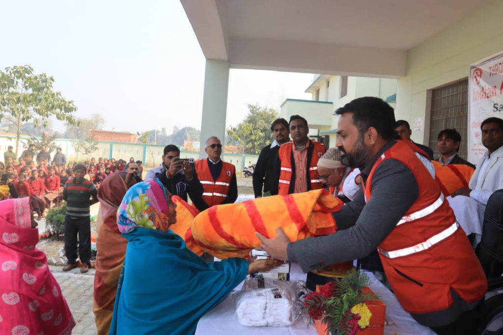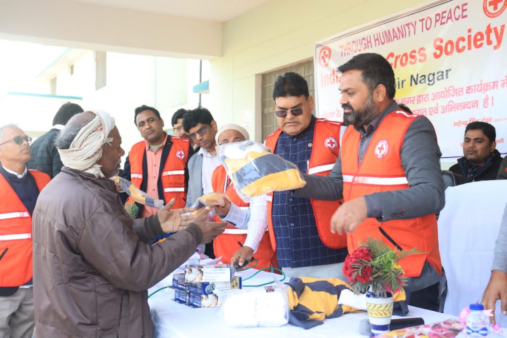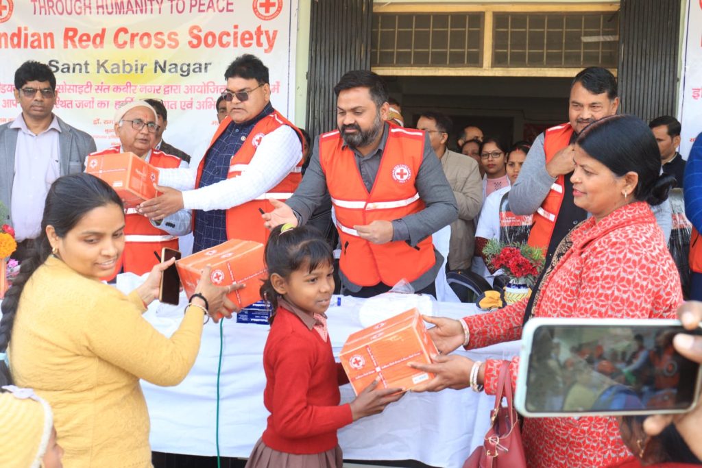 संत कबीर नगर 08 फरवरी 2024 इंडियन रेड क्रॉस सोसाइटी संत कबीर नगर सौजन्य से क्षेत्रीय आयुर्वेदिक एवं यूनानी 50 बेड आयुष चिकित्सालय ग्राम- मंझरियागंगा में एक बृहद कैंप का आयोजन किया गया। मुख्य अतिथि के रूप में जिलाधिकारी महेंद्र सिंह तंवर द्वारा कैंप में प्रतिभाग किया गया। जिसमें वृद्धा आश्रम के सभी 60 पुरुष एवं महिला को कंबल, धोती एवं त्रिपाल देकर सम्मानित किया गया, इसके अतिरिक्त क्षेत्र के लगभग 1000 लोगों में कंबल त्रिपाल, धोती, टी शर्ट, मास्क, स्टोव, आक्सीमीटर तथा जूनियर हाईस्कूल की 70 छात्राओं को हाइजीनिक किट मास्क प्रदान किया गया।