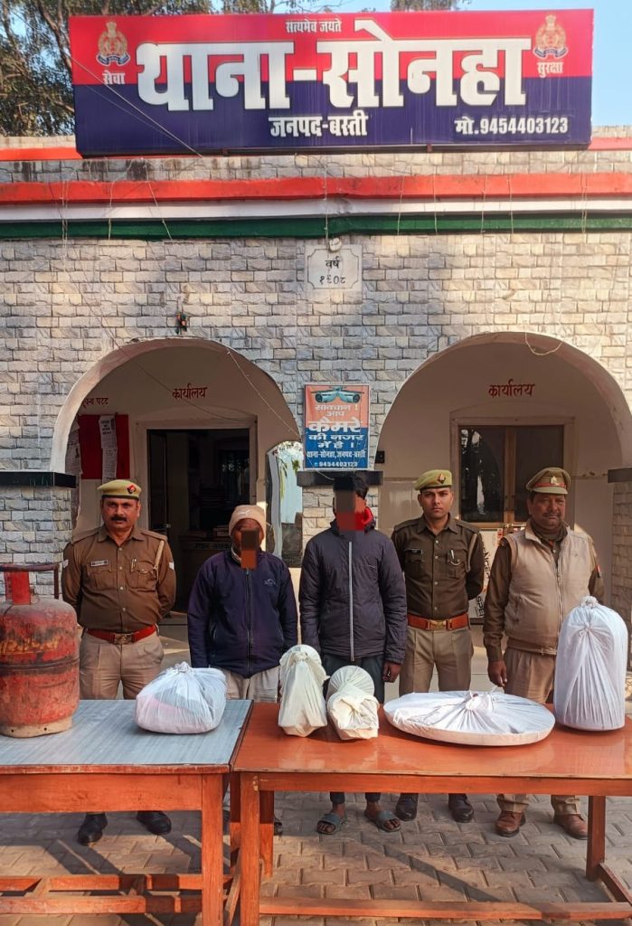 बस्ती जनपद में प्रभारी निरीक्षक सोनहा विनोद कुमार मिश्रा के निर्देशन में आज दिनांक 10.02.2024 को थाना सोनहा पुलिस फोर्स द्वारा थाना सोनहा पर पंजीकृत मु0अ0सं0 27/2024 धारा 457,380 भा0द0वि0 से संबंधित 02 नफर अभियुक्तगण को चोरी किये गये सामान 06 अदद साड़ी रंगीन,एक जोड़ी पायल सफेद धातु, एक जोड़ी बिछुआ सफेद धातु, दो अदद सीलिंग फैन, एक अदद सिलाई मशीन सुमो,दो अदद परात पीली धातु. एक अदद गगरा पीली धातु व एक अदद भारत कंपनी का खाली गैस सिलेंडर ,टिल्लू पंप का वाइंडिंग तार, एक अदद कुकर एल्युमिनियम के साथ गिरफ्तार कर मा0न्यायालय बस्ती रवाना किया गया