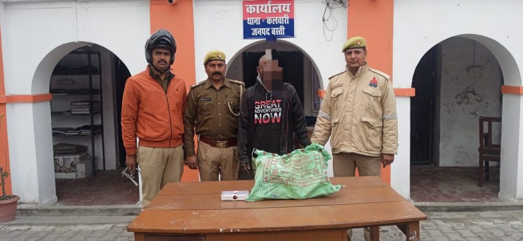 बस्ती जनपद में आज दिनांक 14.02.2024 को थानाध्यक्ष कलवारी भानु प्रताप सिंह के नेतृत्व में उ0नि0 विवेकानंद तिवारी द्वारा मु0अ0सं0 31/2024 धारा 379/411 IPC व मु०अ०स० 32/24 धारा -457/411 IPC में प्रकाश में आये अभियुक्त लालू चौहान पुत्र त्रिवेणी निवासी बैड़ारी मुस्तहकम थाना कलवारी जिला बस्ती को समय 14:25 बजे पिपरा मोड़ से गिरफ्तार कर माननीय न्यायालय बस्ती रवाना किया गया ।