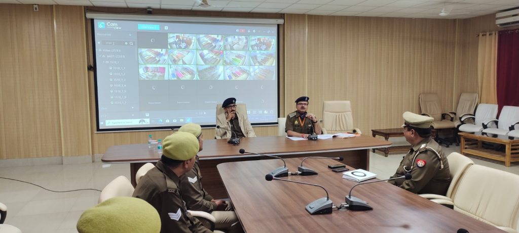 बस्ती जनपद में आज दिनांक 16.02.2024 को पुलिस अधीक्षक बस्ती गोपाल कृष्ण चौधरी एवं अपर पुलिस अधीक्षक बस्ती ओम प्रकाश सिंह द्वारा उoप्रo आरक्षी नागरिक पुलिस भर्ती 2024 की लिखित परीक्षा के दृष्टिगत पुलिस लाइन स्थित प्रेक्षागृह में आपरेशन दृष्टि के माध्यम से सभी सीसीटीवी कैमरों की निगरानी करने हेतु सम्बन्धित को आदेशित निर्देशित किया तथा शासन से प्राप्त आदेश निर्देश से अवगत करा कर परीक्षा सकुशल, शांतिपूर्ण व पारदर्शी ढंग से सम्पन्न कराने हेतु आवश्यक दिशा-निर्देश दिया गया।