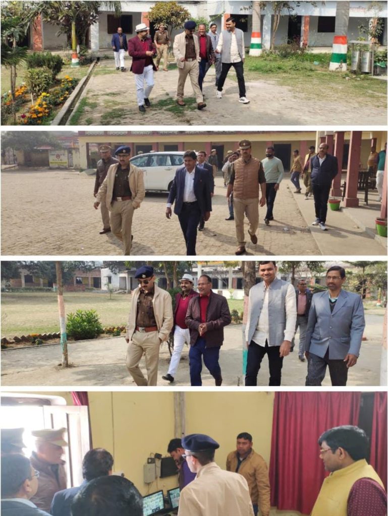 बस्ती जनपद में पुलिस अधीक्षक बस्ती द्वारा दिनांक-18.02.2024 को द्वारा उ0प्र0 आरक्षी नागरिक पुलिस भर्ती 2024 की लिखित परीक्षा के दृष्टिगत विभिन्न परीक्षा केंद्रों यथा, किसान इंटर कॉलेज गोटवा नगर, देशराजनारंग इंटर कॉलेज वाल्टरगंज, आदि का भ्रमण कर निरिक्षण किया गया एवं कॉलेज/ विद्यालयों के प्रधानाचार्य व प्रबंधन से वार्ता कर शासन से प्राप्त सुरक्षा संबंधित आदेश-निर्देश से अवगत करा कर परीक्षा को सकुशल, शांतिपूर्ण व पारदर्शी ढंग से सम्पन्न कराने हेतु आवश्यक दिशा-निर्देश दिया गया ।