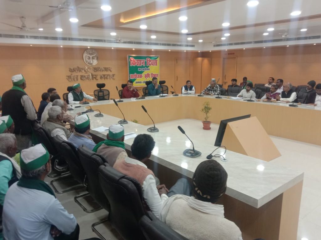 संत कबीर नगर 21 फरवरी 2024 मुख्य विकास अधिकारी संत कुमार की अध्यक्षता में किसान दिवस का आयोजन कलेक्ट्रेट सभागार में किया गया। किसान दिवस के अवसर पर रबी सीजन अंतर्गत किसानों द्वारा उठाई गयी शिकायतों का सम्बंधित विभागीय अधिकारियों द्वारा समाधान बताया गया। भूमि संरक्षण अधिकारी द्वारा बताया गया कि वाटरशेड एरिया अंतर्गत मृदा क्षरण को रोकने के लिए उनके द्वारा मेड़बंदी, समतलीकरण, फसल उत्पादन का कार्य कराया जाता है। किसानों द्वारा रकशाकोड, तेनुआराजा, सेउआपर गांव में नीलगाय जंगली सूअर एवं बंदर द्वारा फसलों को नुकसान पहुंचा जाने की शिकायत की गई। वन अधिकारी के द्वारा बताया गया कि ग्राम प्रधान के सहयोग से उन्हें वनरक्षक के माध्यम से पकड़ कर जंगल में छोड़े जाने की व्यवस्था है। विद्युत विभाग की शिकायत अंतर्गत बताया गया की मुखलिसपुर कथेच्या में विद्युत के तार अत्यधिक नीचे लटक रहे हैं जिससे फसल कटाई में व्यवधान होगा और आग लगने की संभावना रहेगी, जिसे समय रहते दुरुस्त कर लिया जाए। सहायक अभियंता द्वारा बताया गया कि इसकी कार्य योजना तैयार कर ली गई है। फसल कटाई उपरांत के खाली होने पर कार्य कर लिया जाएगा। किसानों द्वारा जल निगम विभाग द्वारा गांव में कार्य करने के उपरांत चकरोड सड़क इत्यादि काटकर छोड़ दी जा रही है। इसके संबंध में शिकायत प्रस्तुत की गई विभाग का कोई भी अधिकारी उपस्थित नहीं था। डेयरी डेवलपमेंट बोर्ड के अधिकारी द्वारा समितियां के माध्यम से फैट परसेंटेज एवं एसएनएफ के आधार पर दुग्ध क्रय करने की बात बताई गई। देसी गाय के पशुपालक हेतु मुख्यमंत्री प्रगतिशील पशुपालन प्रोत्साहन योजना चलाई जा रही है जिसमें साहिवाल गिर, थारपारकर हरियाणा नस्ल की गायों के पशुपालकों को प्रोत्साहित किया जाएगा।। किसानों द्वारा अवगत कराया गया कि उनका पंजीकरण में भूमि कम दर्ज होने के कारण एक ओर बीज अनुदान में कम धनराशि प्राप्त हो रही है तो दूसरी ओर धान बिक्री करने में उनके उत्पादन में कटौती की जा रही है मौके पर तहसील स्तर पर सत्यापन किए जाने में विलंब होता है इसके समाधान निकाले जाने की व्यवस्था की जाए।