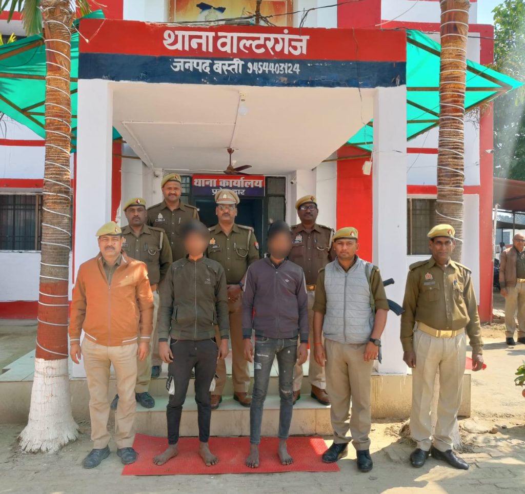 बस्ती जनपद थानाध्यक्ष वाल्टरगंज रामफल चौरसिया मय पुलिस टीम द्वारा बहद ग्राम तेलियाडीह से दो गौ तस्कर व गोवध से सम्बन्धित अभियुक्तगण को गिरफ्तार किया गया जिसके सम्बन्ध में थाना वाल्टरगंज पर मु0अ0सं0- 032/2024 धारा धारा 3/5ए/8 गोवध निवारण अधिनियम व 11 पशु क्रूरता अधिनियम कर दोनों गिरफ्तार अभियुक्तों को नियमानुसार विधिक कार्यवाही करते हुए मा0 न्यायालय रवाना किया।