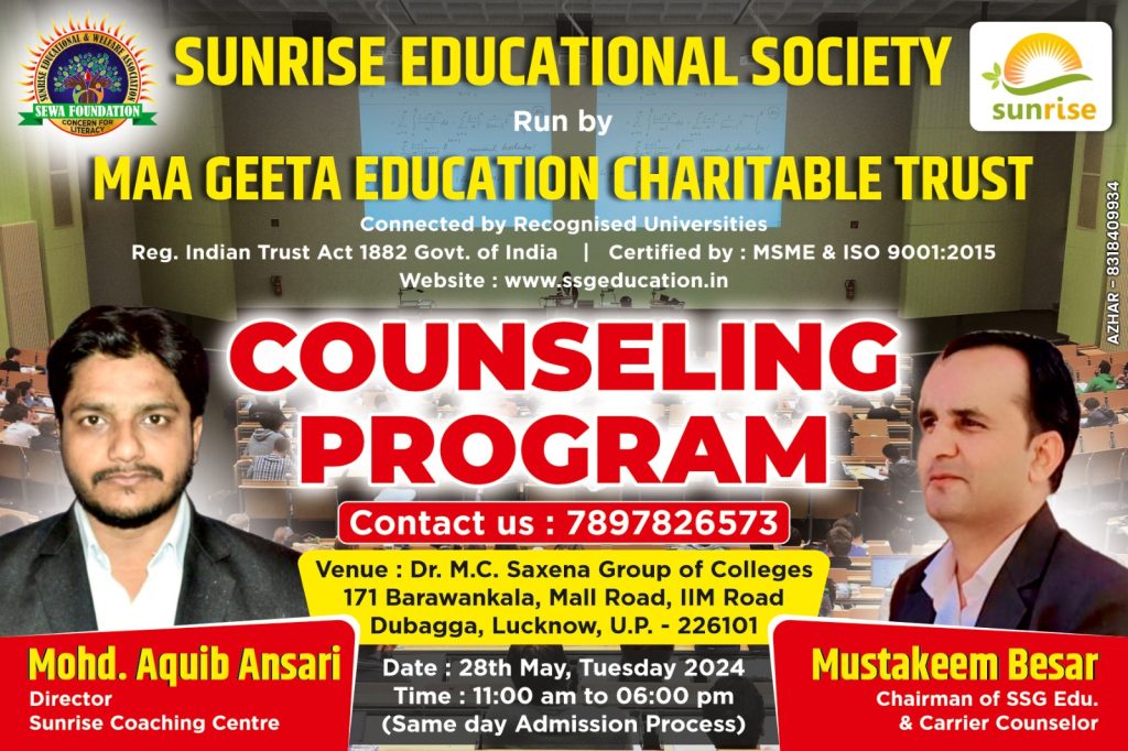 एस. एस. जी. एजुकेशन क्रांति की दूसरी काउंसलिंग 28 मई को डॉ. एम. सी. सक्सेना ग्रुप ऑफ़ कॉलेज, लखनऊ में