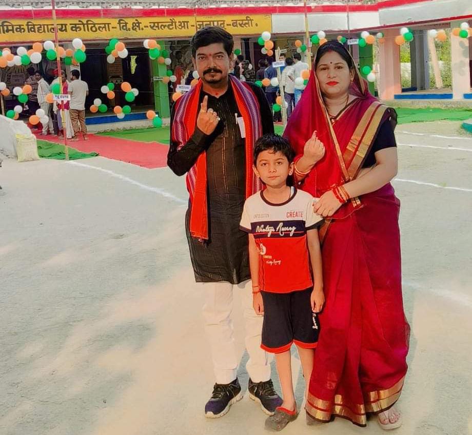 बस्ती जनपद भारतीय जनता पार्टी के युवा नेता नितेश शर्मा ने अपने बूथ पर जाकर अपनी पत्नी के साथ अपने मताधिकार का प्रयोग किया है। उन्होंने समस्त मतदाताओं से अपील करते हुए कहा है कि सभी लोग अपने बूथ पर पहुंचकर अपने मताधिकार का प्रयोग करें जिससे हमारा लोकतंत्र और अधिक मजबूत हो सके।