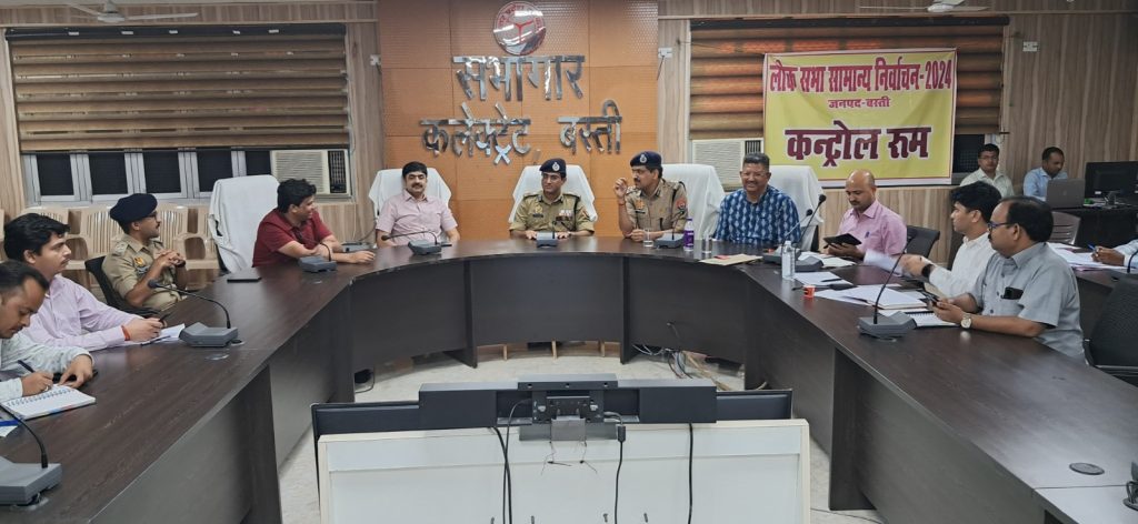 अपर पुलिस महानिदेशक गोरखपुर जोन, गोरखपुर के0एस0 प्रताप के अध्यक्षता में मण्डलायुक्त बस्ती मण्डल, बस्ती अखिलेश सिंह, पुलिस महानिरीक्षक बस्ती परिक्षेत्र, बस्ती रामकृष्ण भारद्वाज, जिलाधिकारी बस्ती आन्द्रा वामसी, पुलिस अधीक्षक बस्ती गोपाल कृष्ण चौधरी के मौजूदगी में दिनांक 25.05.2024 को जनपद बस्ती में हो रहे मतदान को निष्पक्ष व शान्ति पूर्ण रूप से सम्पन्न कराने के दृष्टिगत भ्रमणशील होकर विभिन्न मतदान केन्द्रों का निरीक्षण किया गया तथा कलेक्ट्रेट सभागार बस्ती में मीटिंग कर आवश्यक दिशा निर्देश दिये गये। इसी क्रम में पुलिस अधीक्षक कार्यालय बस्ती का भ्रमण किया गया।
