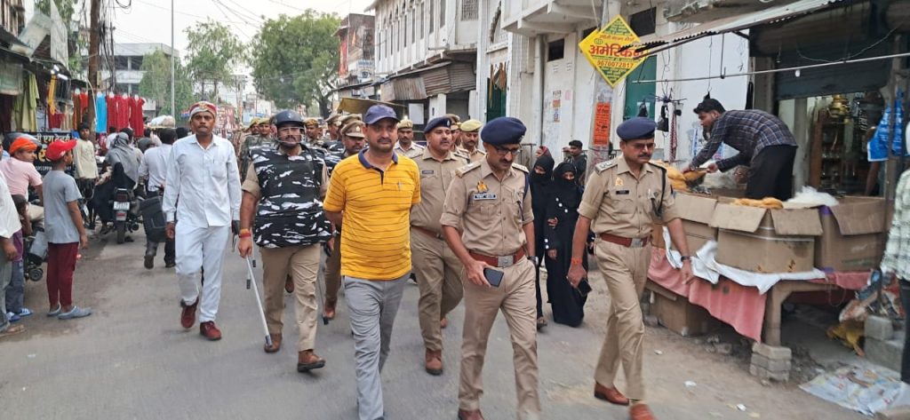 बस्ती जनपद आज दिनाक 16.06.2024 को पुलिस अधीक्षक बस्ती गोपाल कृष्ण चौधरी द्वारा अपर जिलाधिकारी बस्ती, अपर पुलिस अधीक्षक बस्ती, क्षेत्राधिकारी सदर, थानाध्यक्ष पुरानी बस्ती, थानाध्यक्ष महिला थाना मय पुलिस बल के आगामी त्यौहार बकरीद में शांति/कानून व्यवस्था बनाए रखने दृष्टिगत पुलिस अधिकारी/कर्मचारीगण के साथ थाना पुरानी बस्ती क्षेत्र के चौकी दक्षिण दरवाजा से मंगल बाजार होते हुए करूआ बाबा तिराहे, हण्डिया, आदि क्षेत्र अन्तर्गत पैदल गश्त किया गया तथा आमजन से संवाद स्थापित कर त्यौहार को शांतिपूर्वक मनाने हेतु अपील की गयी तथा संबंधित को सुरक्षा सम्बन्धित आवश्यक दिशा-निर्देश दिया गया।